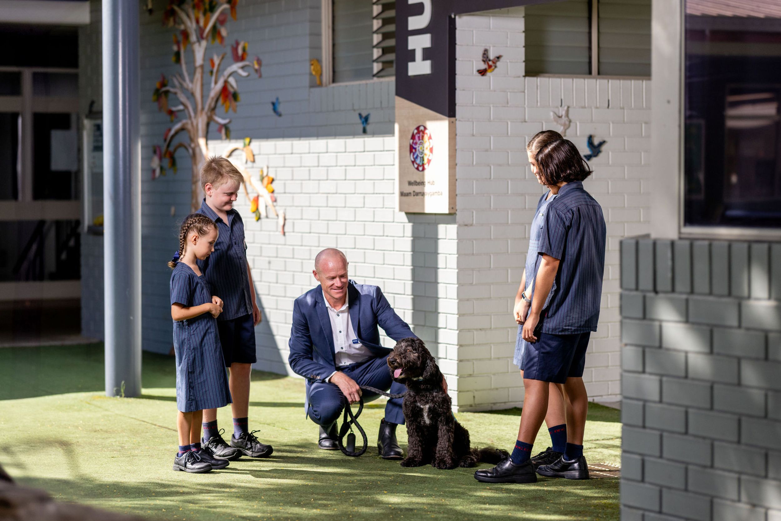 Barkley's role extends beyond mere companionship, actively participating in a spectrum of carefully curated wellbeing programs and activities. Grounded in scientific research affirming the therapeutic benefits of canine interaction, Barkley contributes to stress reduction, fostering a sense of calmness, and cultivating a consistently positive atmosphere within our school environment.