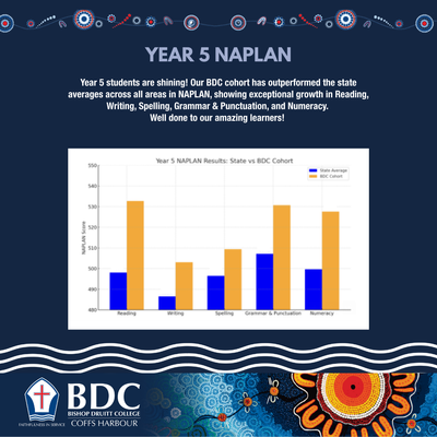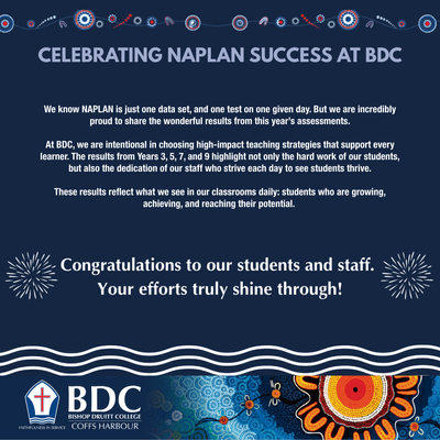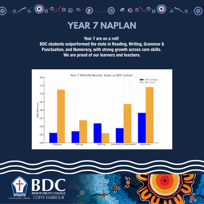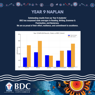 Every year, students in Years 3, 5, 7, and 9 participate in the National Assessment Program – Literacy and Numeracy (NAPLAN). While we know that NAPLAN is just one test on one particular day, we are incredibly proud to share this year's wonderful results, which highlight the excellent teaching and learning that occurs at Bishop Druitt College. We are particularly proud of our students for their persistence and resilience, which is clearly reflected in these outstanding achievements.