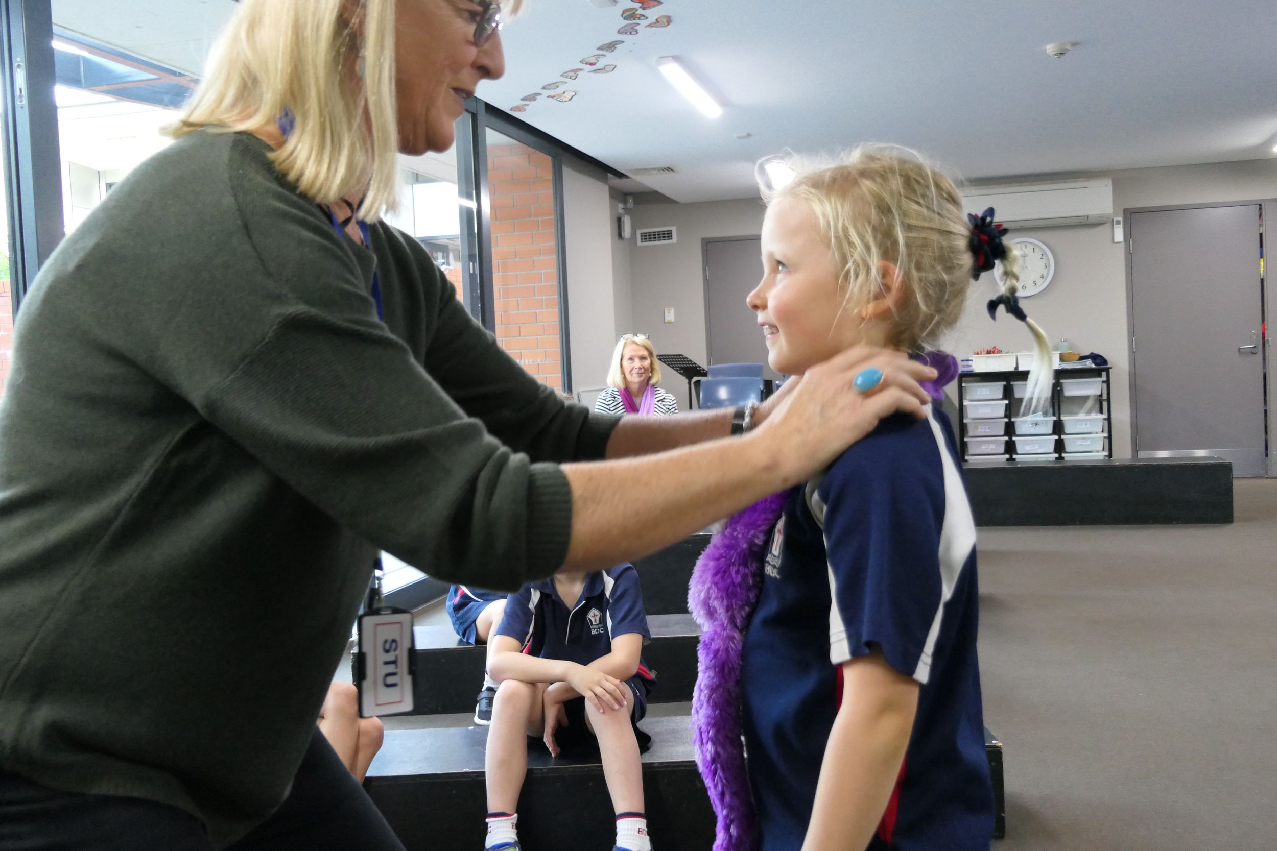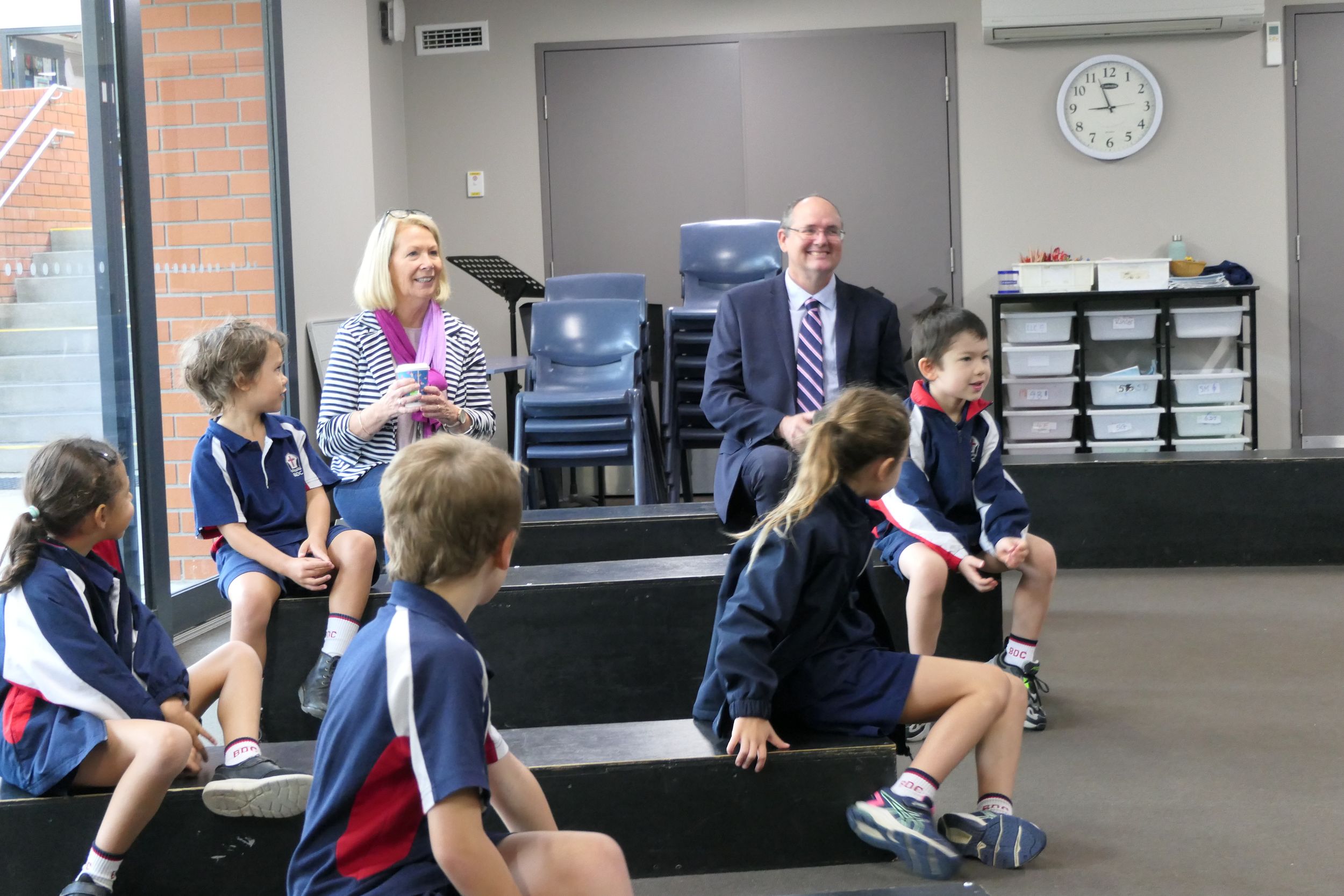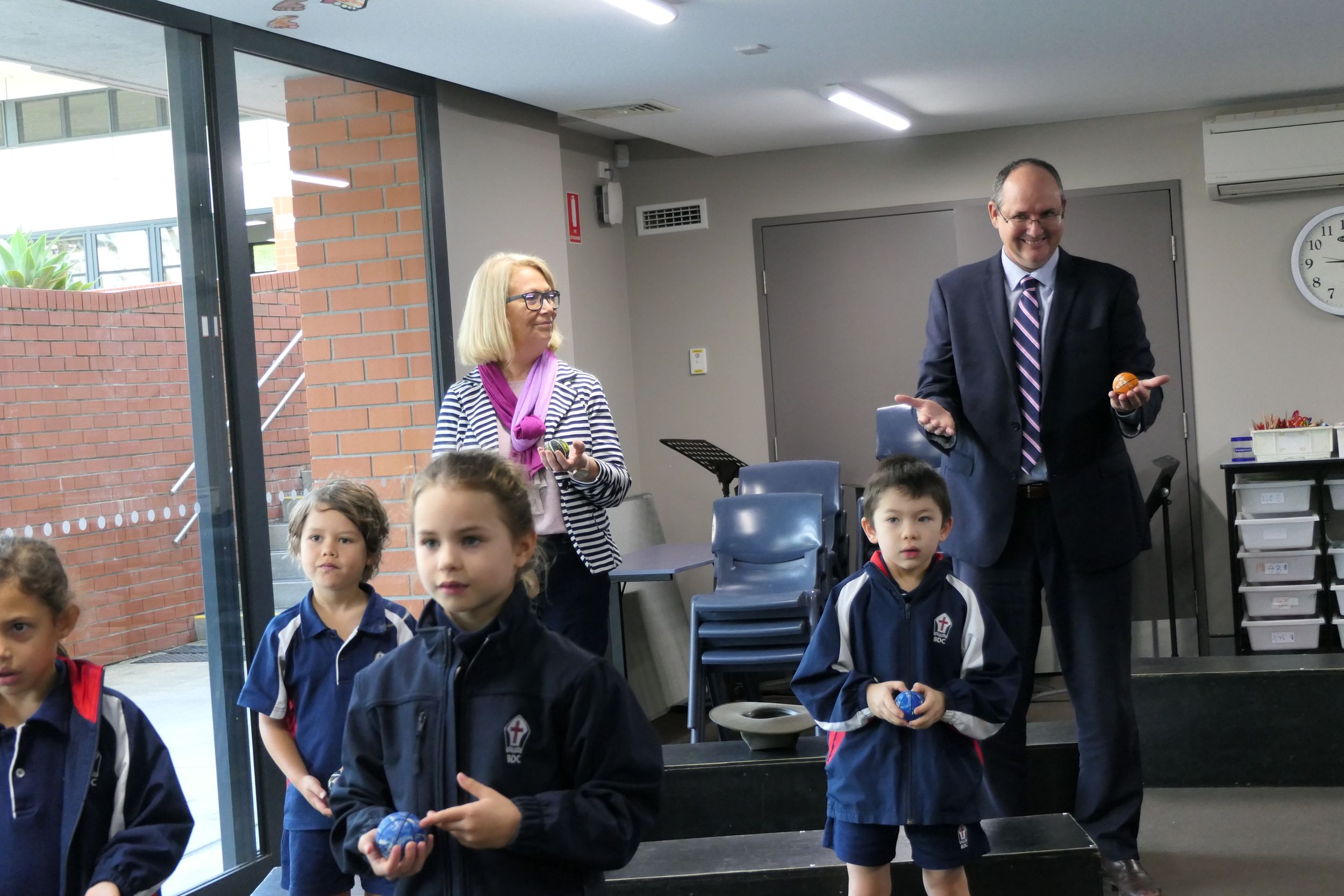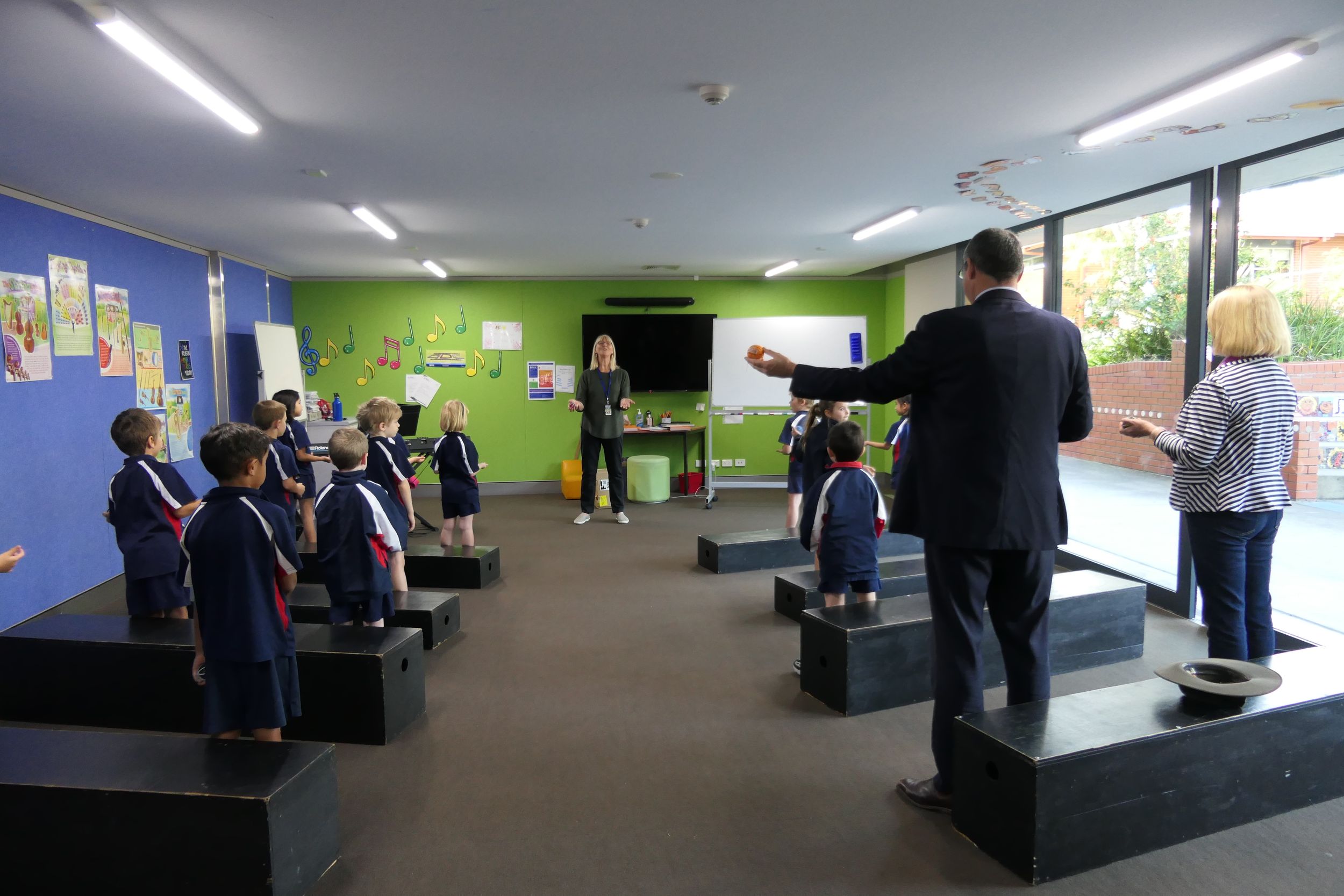 Mayor Knight was involved in a primary music class led by Ms Ruth Stuart learning rhythms using bouncy balls. The bouncy balls add a fun element and help students to engage fully leading to improved learning.
