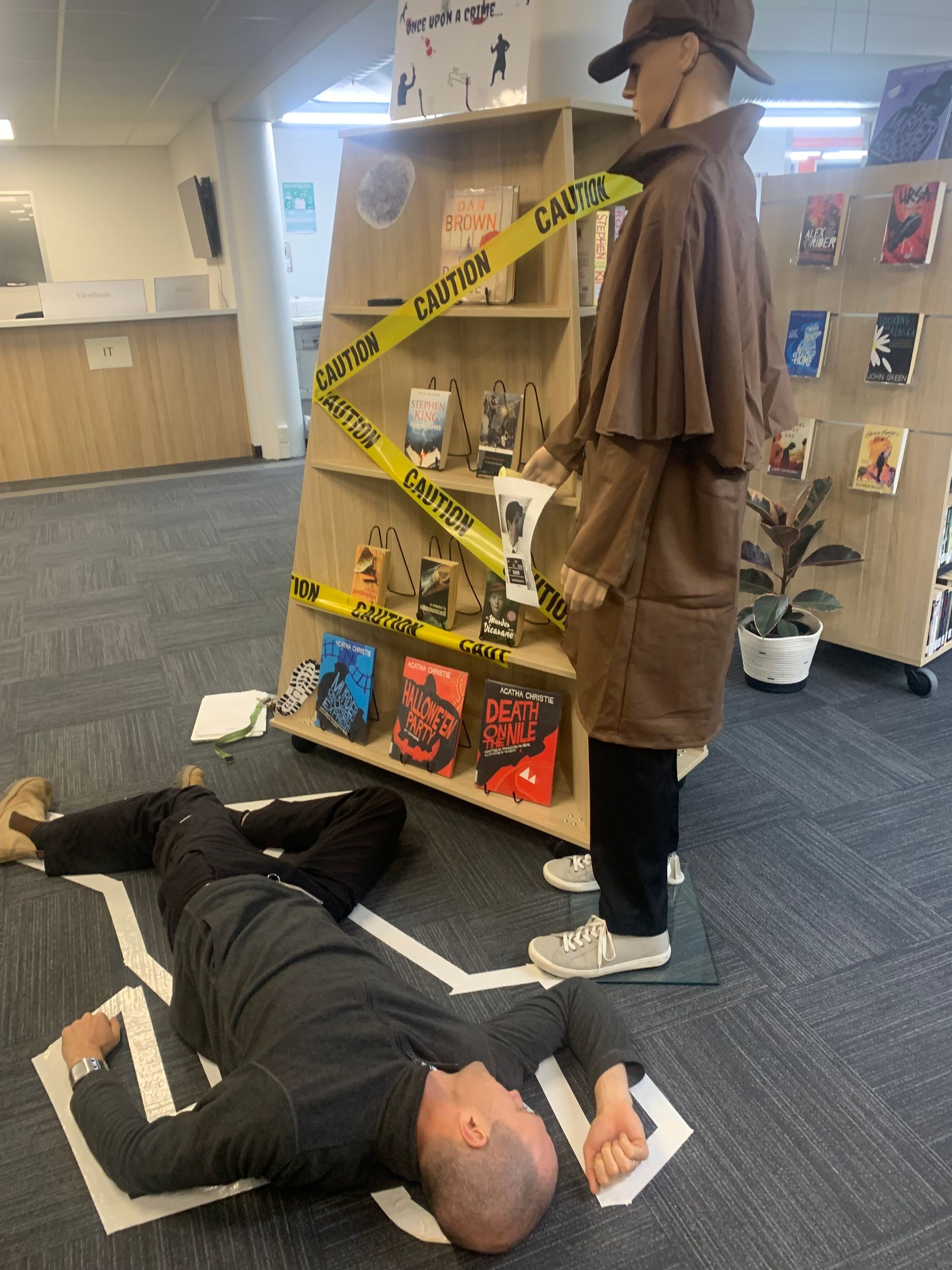 The ‘Once Upon a Crime…’ display was designed to inspire our Year 9 English students, who are currently studying the crime fiction genre. Mr Dale Graham from the TAS Department played a very convincing ‘victim’ after our Staff Meeting!