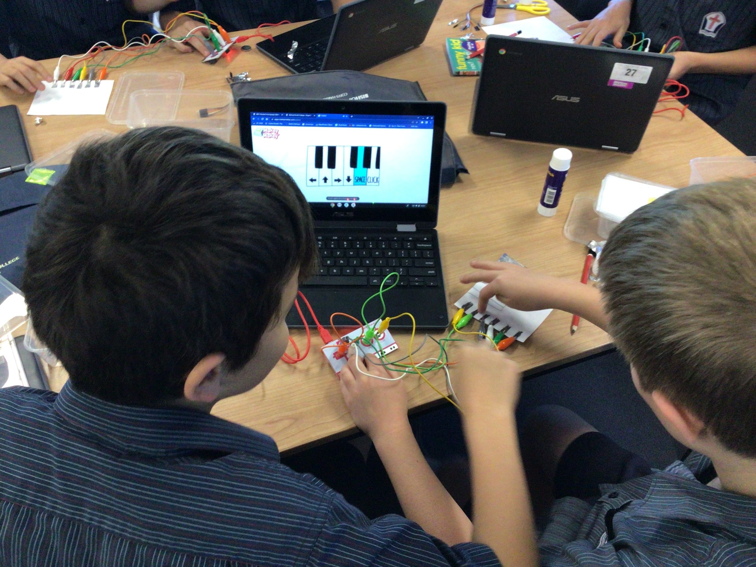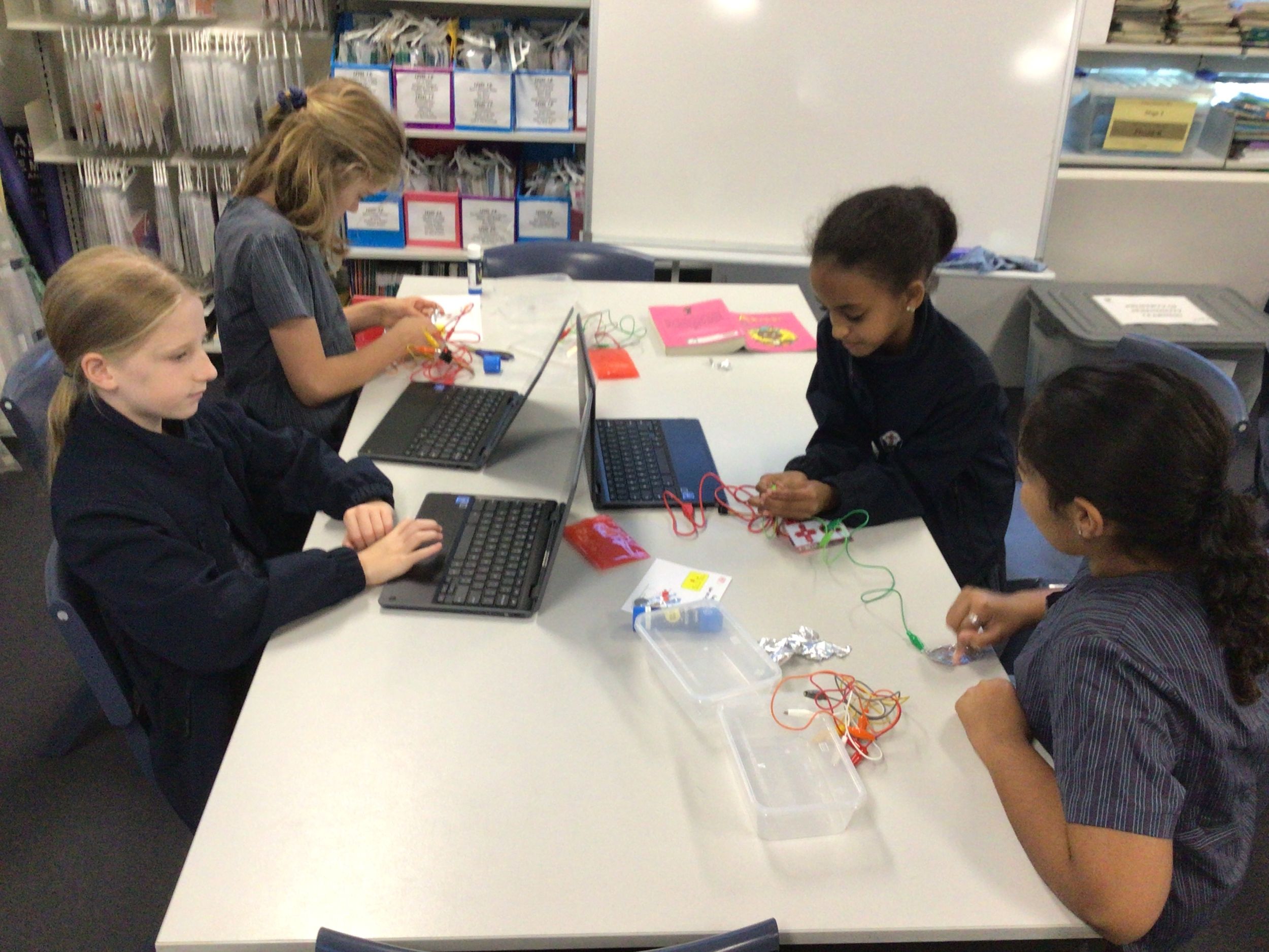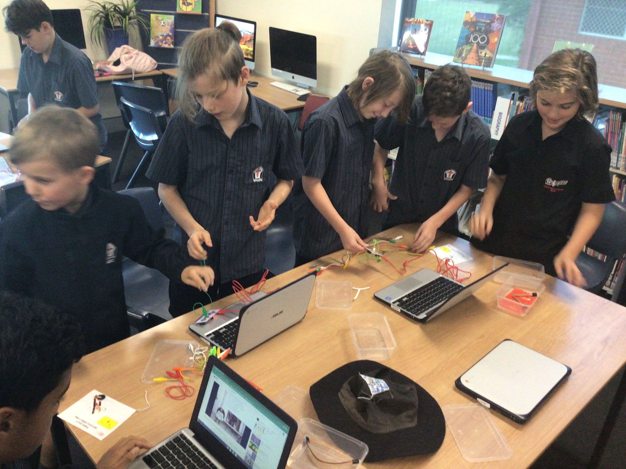Stage 3: In Stage 3, students have been learning about energy transformations and circuits as part of their Science unit and spent the first part of the term consolidating their research skills from term one by locating, sorting and recording relevant information about a renewable energy source of their choice. We found it really interesting to look at live energy data across the Australian energy market and what technologies could be on the horizon. Following our research skills phase, students have now embarked on a mini STEM project using Makey Makeys. Makey Makeys allow the students to engineer their own circuits using anything they can find, even drawing citrus and interfaces to work with computer programs and games! As you can see from the pictures, there is some serious tinkering in progress!