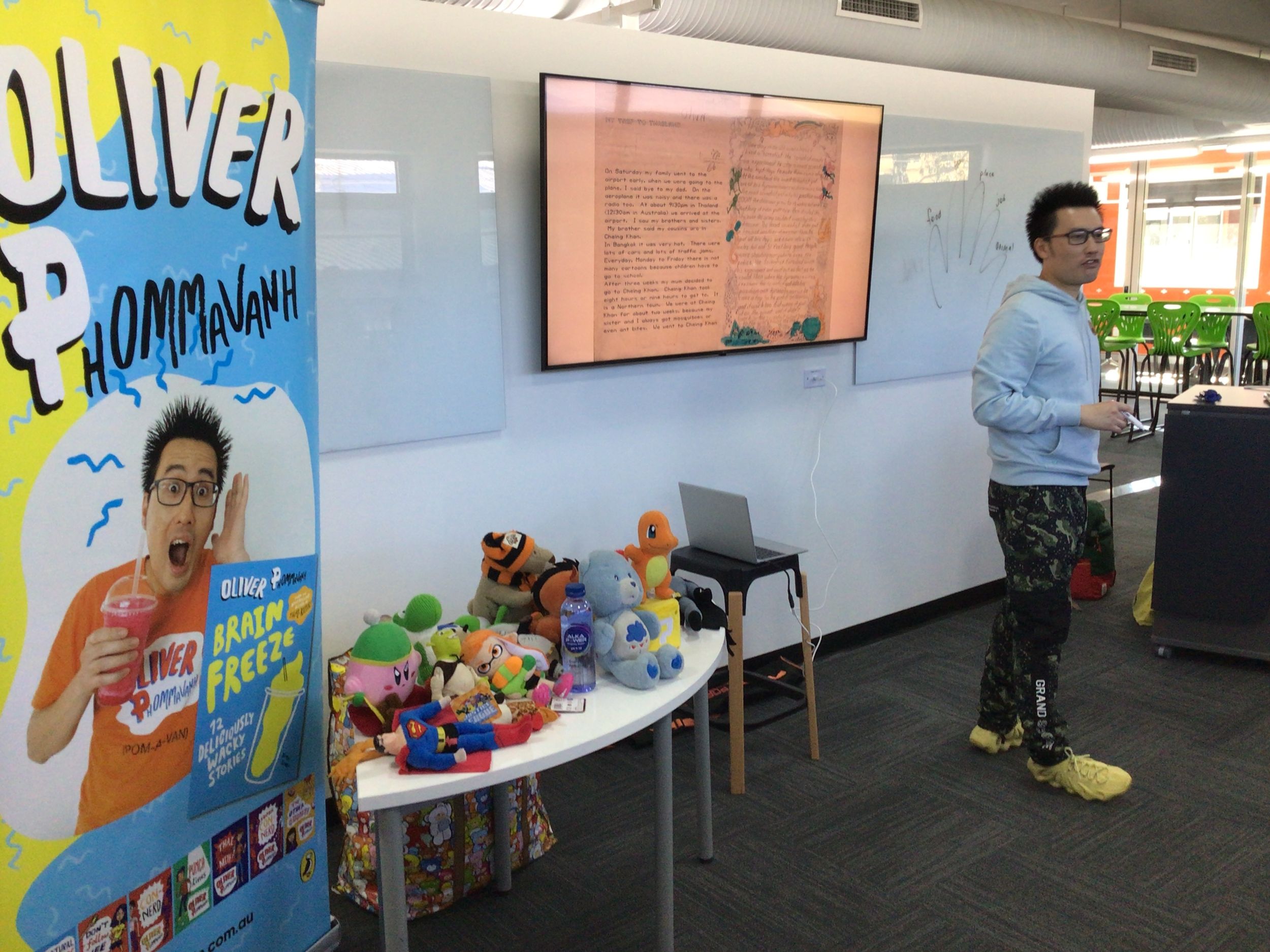 Oliver Phommavanh who is a former teacher, now stand-up comedian and children’s writer. He conducted an author visit for all Stage 2 students as part of the Bellingen Readers & Writers Festival, Schools Program. Oliver included an entertaining presentation about his popular books and techniques on how to come up with jokes, weird characters, and wacky storylines, which was a big hit for students of Stage 2.