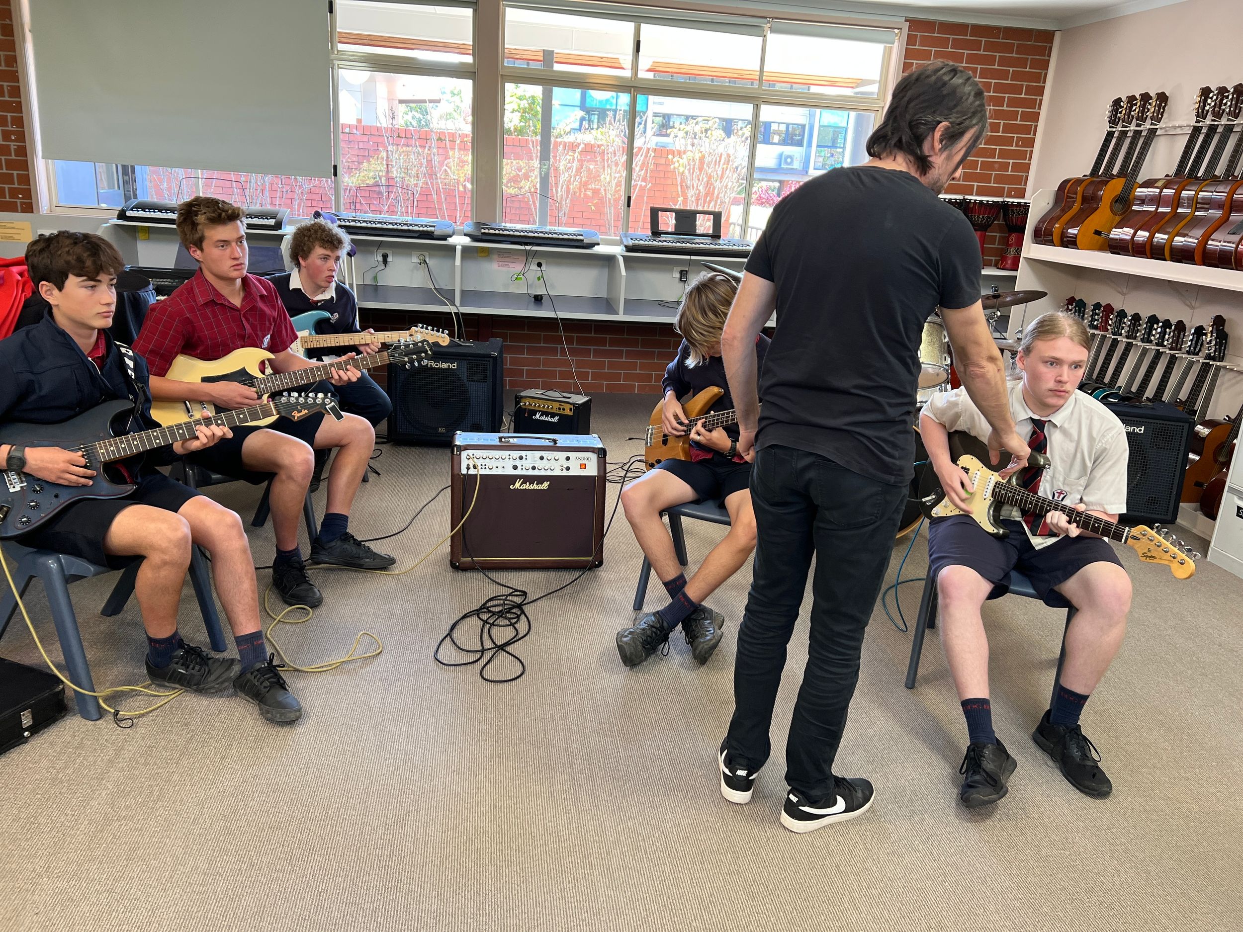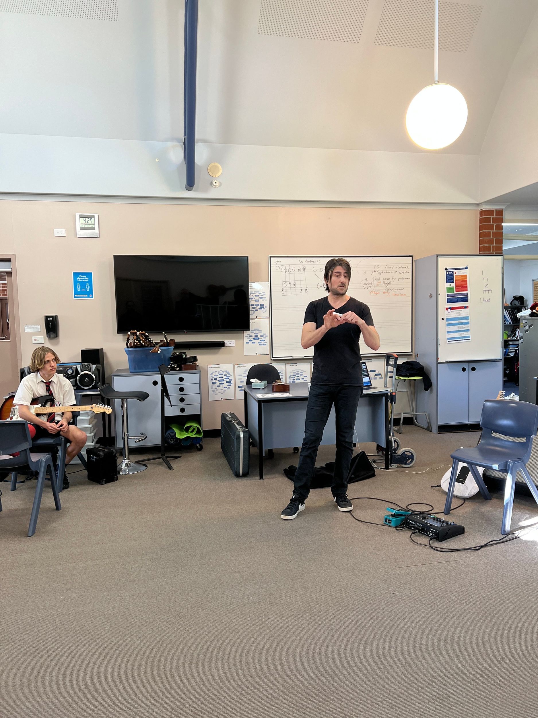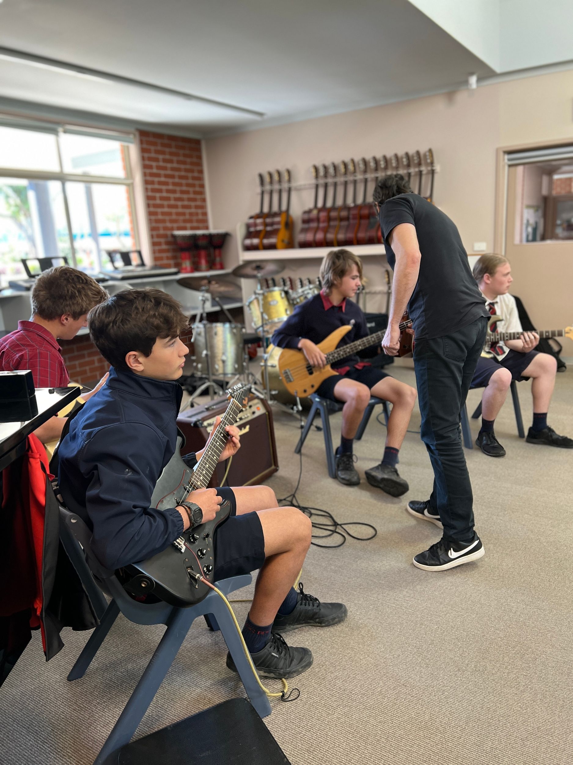 BDC was very fortunate to have Michael Dolce visit BDC for a Q&A session with music students and a guitar masterclass for selected guitarists on Thursday 28th July. Michael is the house guitarist on the tv show, The Voice and has played with artists such as Delta Goodrem, Keith Urban, Jessica Mauboy, Lionel Richie, Seal, Natalie Bassingthwaite and many more. Michael shared his journey with the students and encouraged them to always pursue their dreams and not to let anything stop them in their path. He spoke about taking initiative to create opportunities, practice daily, have a great attitude and expect to get a lot of knockbacks in the music industry. He was impressed with the students at the college and would love to revisit again in the future.