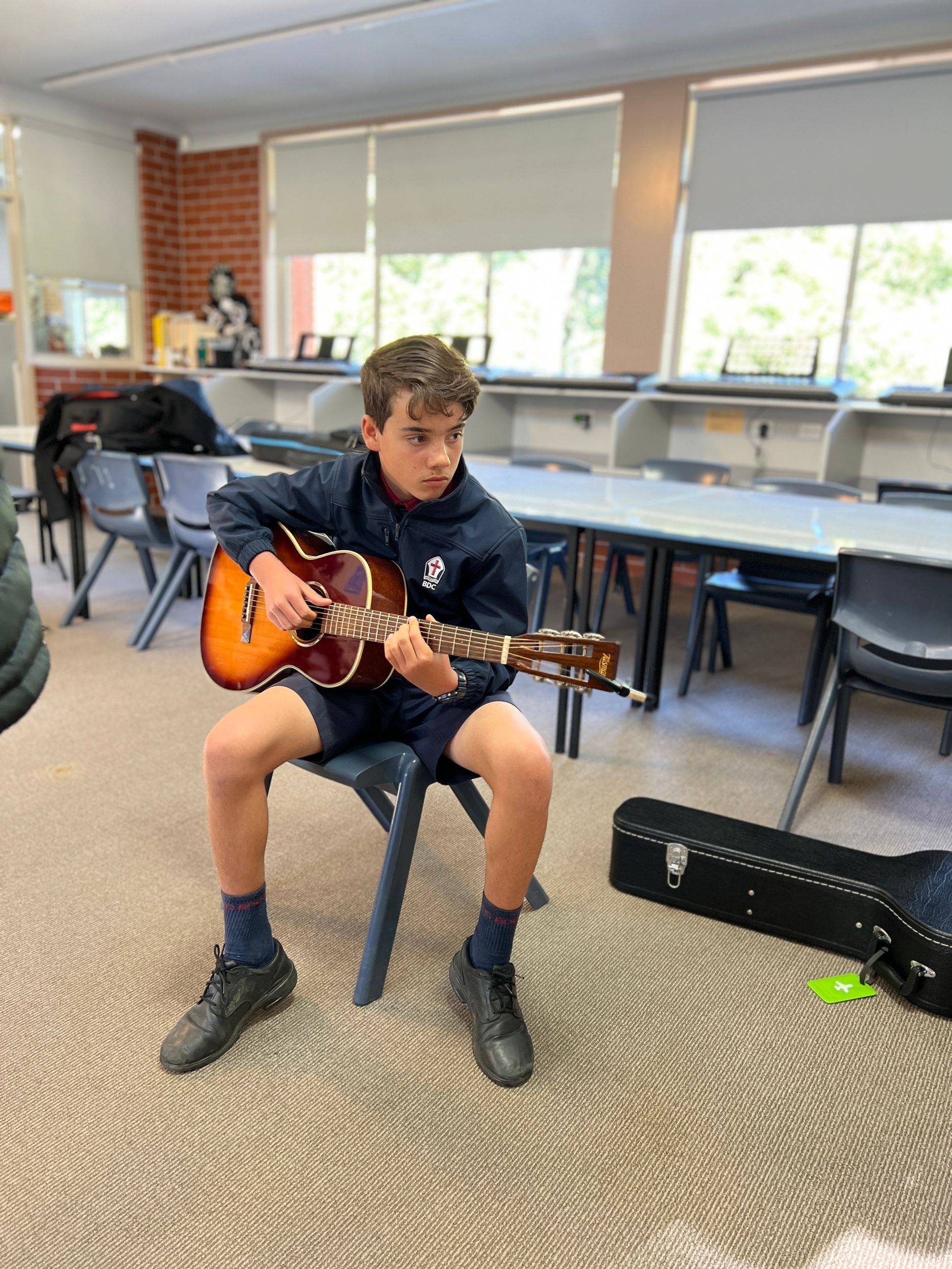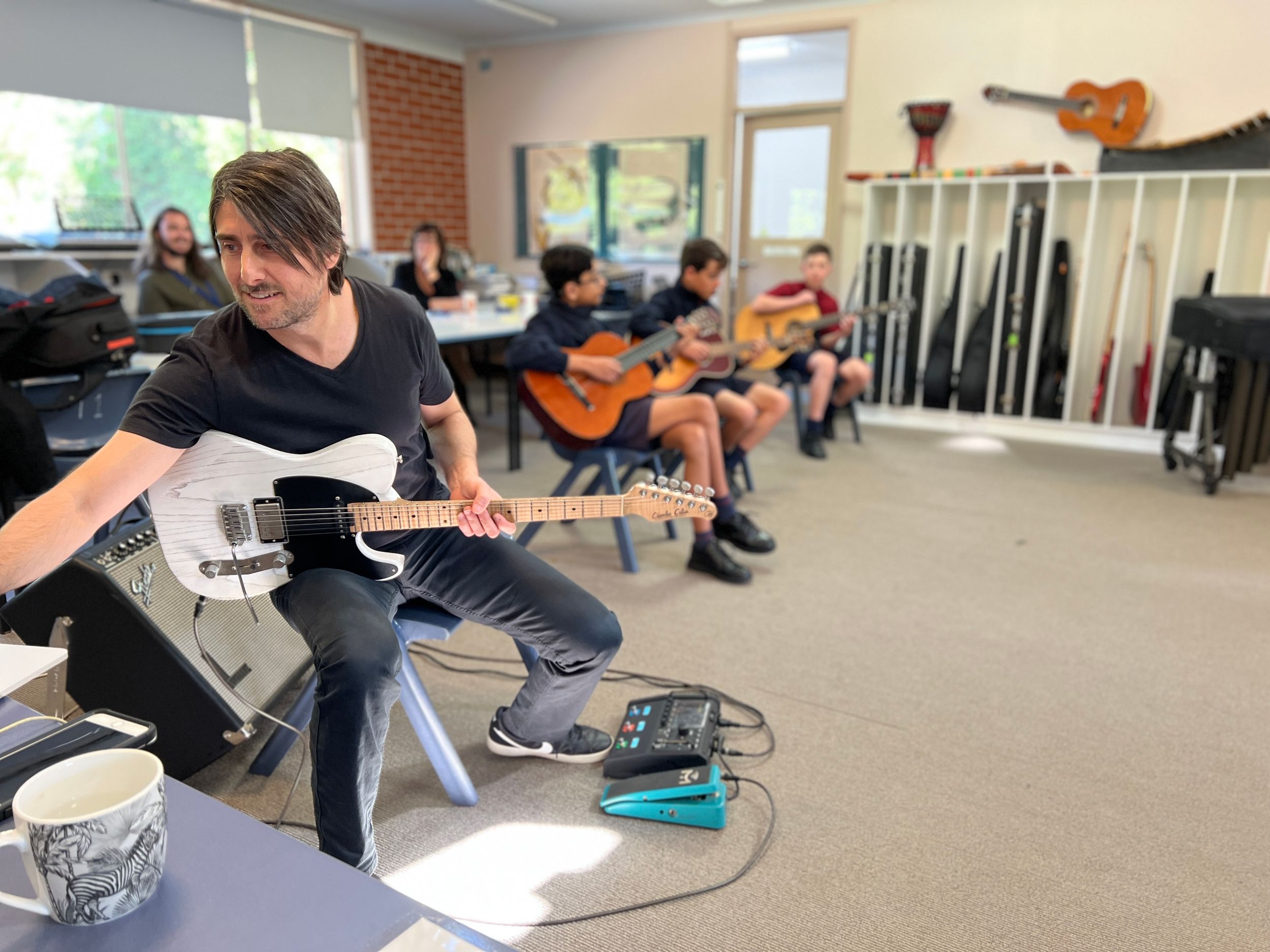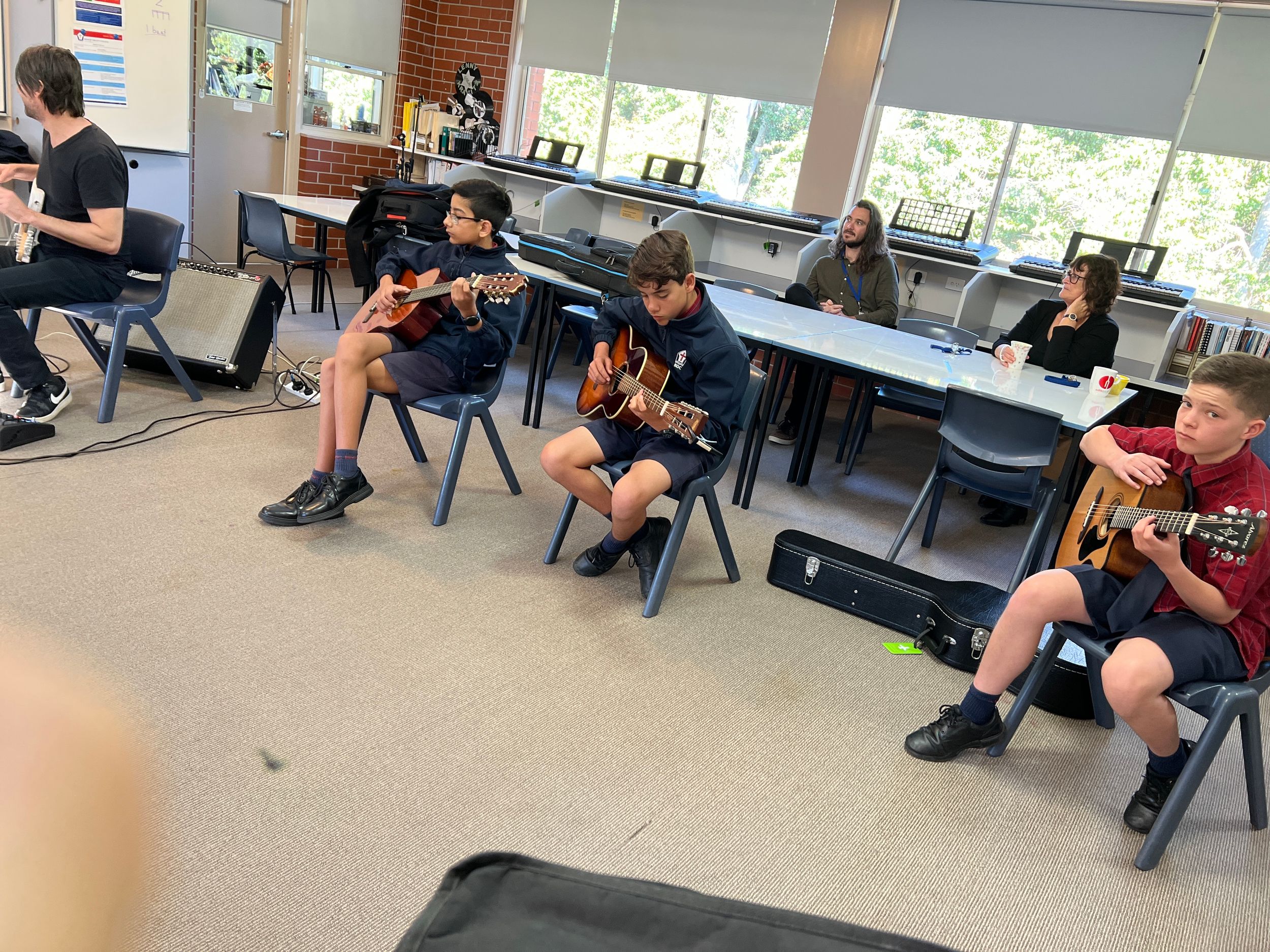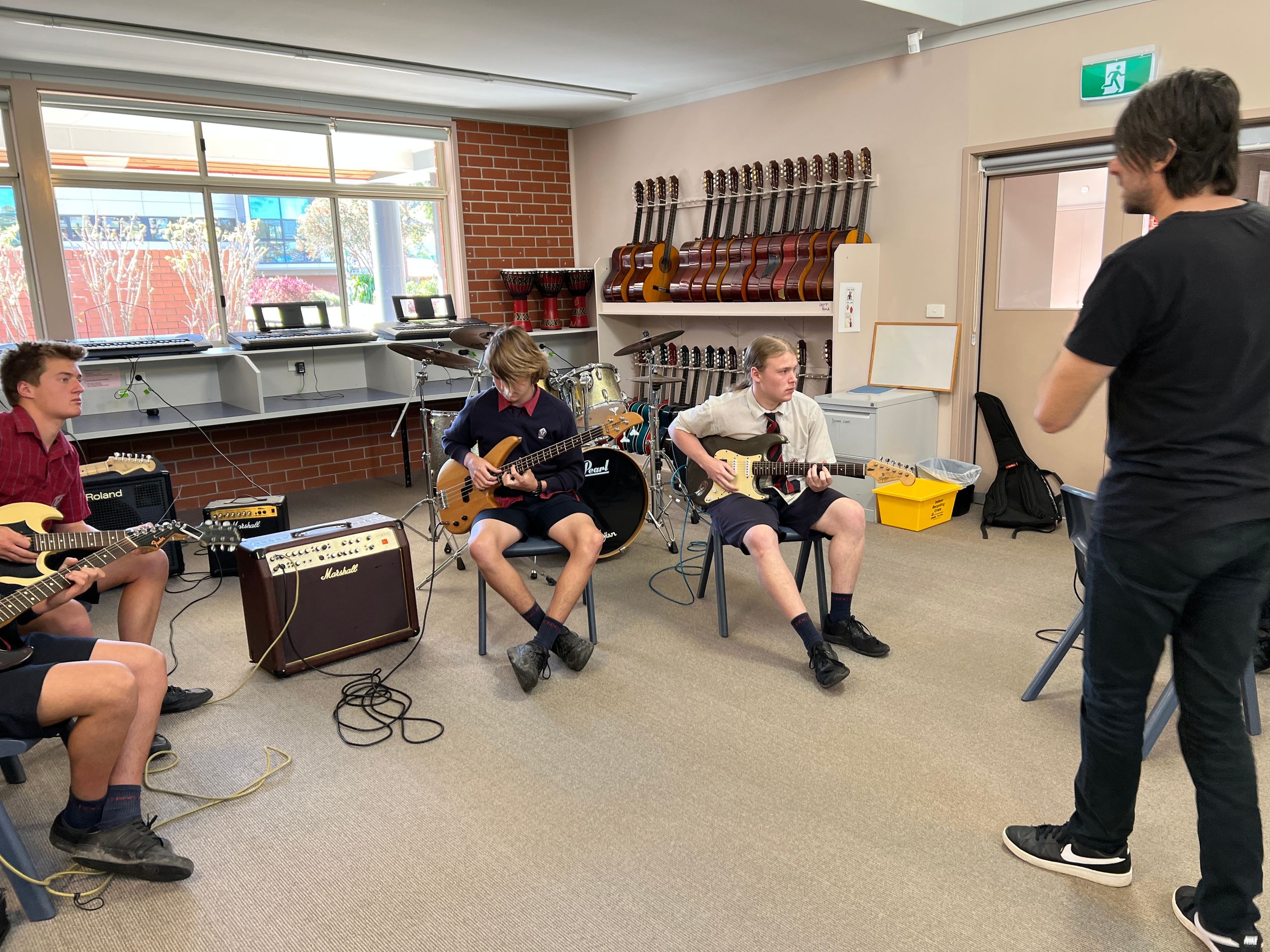 BDC was very fortunate to have Michael Dolce visit BDC for a Q&A session with music students and a guitar masterclass for selected guitarists on Thursday 28th July. Michael is the house guitarist on the tv show, The Voice and has played with artists such as Delta Goodrem, Keith Urban, Jessica Mauboy, Lionel Richie, Seal, Natalie Bassingthwaite and many more. Michael shared his journey with the students and encouraged them to always pursue their dreams and not to let anything stop them in their path. He spoke about taking initiative to create opportunities, practice daily, have a great attitude and expect to get a lot of knockbacks in the music industry. He was impressed with the students at the college and would love to revisit again in the future.
