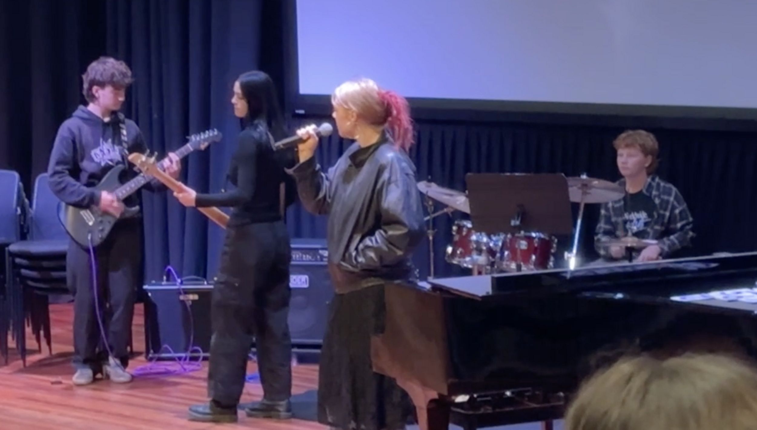 Tim Hardman (10) and Ella-Grace Chowdhury (11) performed “Falling” by Harry Styles at the Week 4 assembly.
