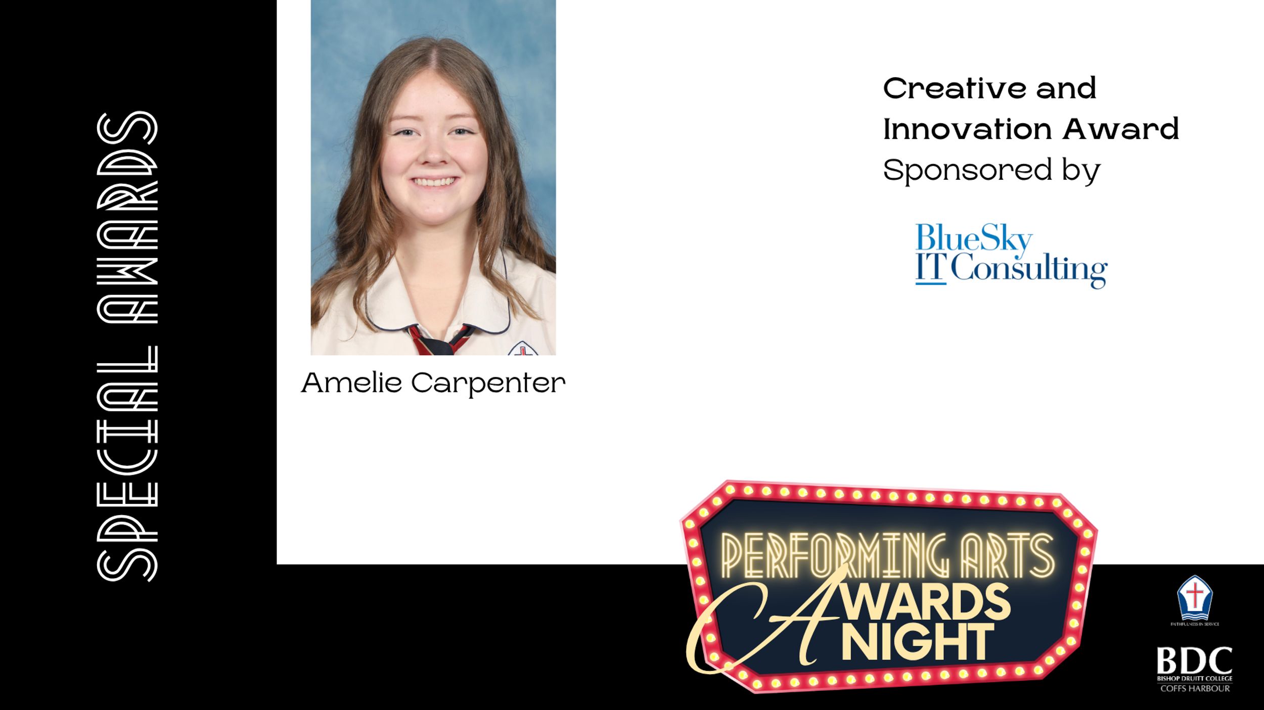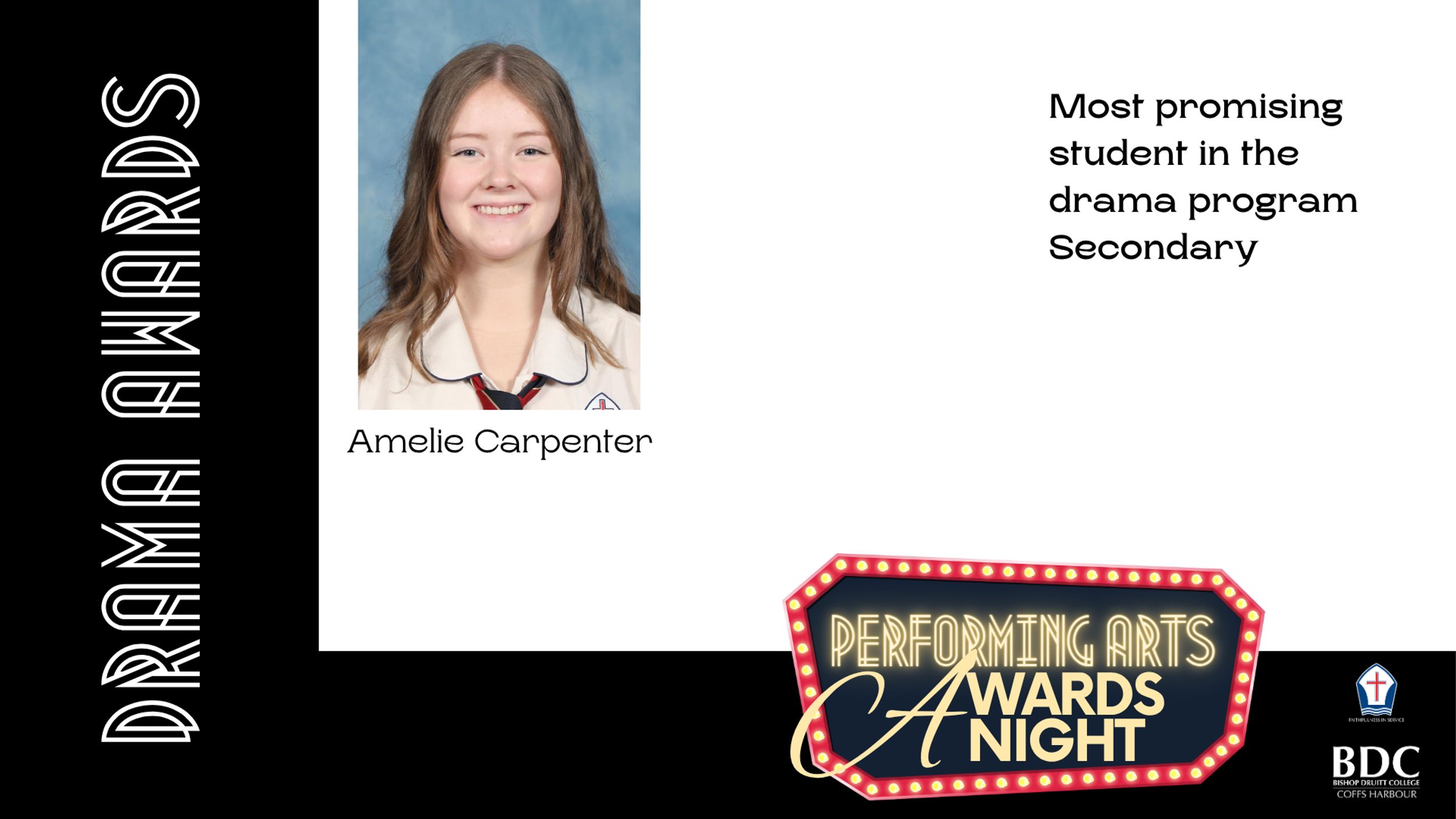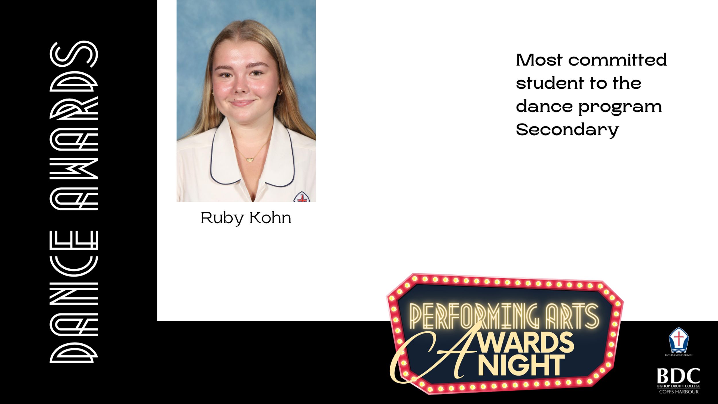 Our annual Performing Arts Awards Evening, held on Thursday 13 November, was a wonderful celebration of the outstanding talent within our Dance, Drama, Music, and Entertainment programs. It was a pleasure to welcome back BDC Alumni, who continue to remain connected to the Performing Arts beyond their school years, as well as to hear an inspiring keynote address from Jack Dutson. We were also delighted to have our outgoing Arts Captains, Ella Chowdhury and Camble Scott, return to assist with the presentation of awards and trophies.