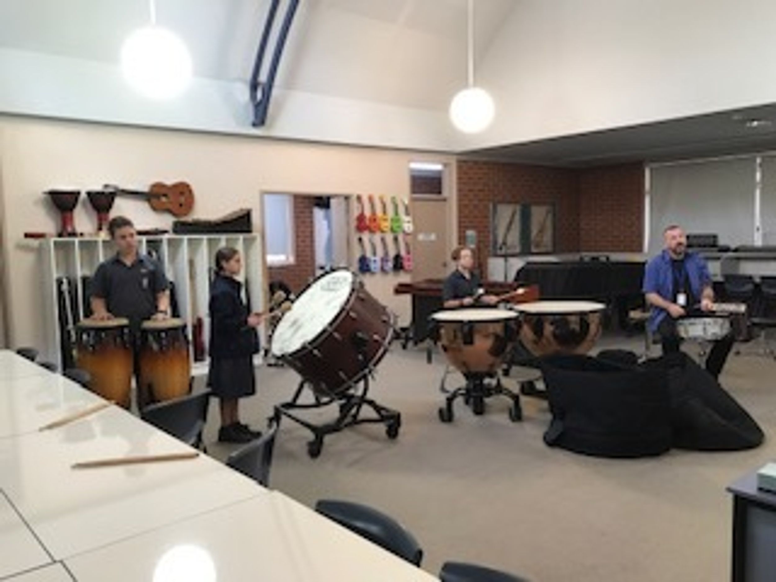 This year, our percussion students have expanded their skills and with Pete Skelton (our percussion teacher) formed two percussion ensembles - one primary and one secondary. The students have been learning how to play a range of large percussion instruments including timpani, bass drum and our newly purchased marimba. They are all thoroughly enjoying the group. New students are definitely welcome to join.