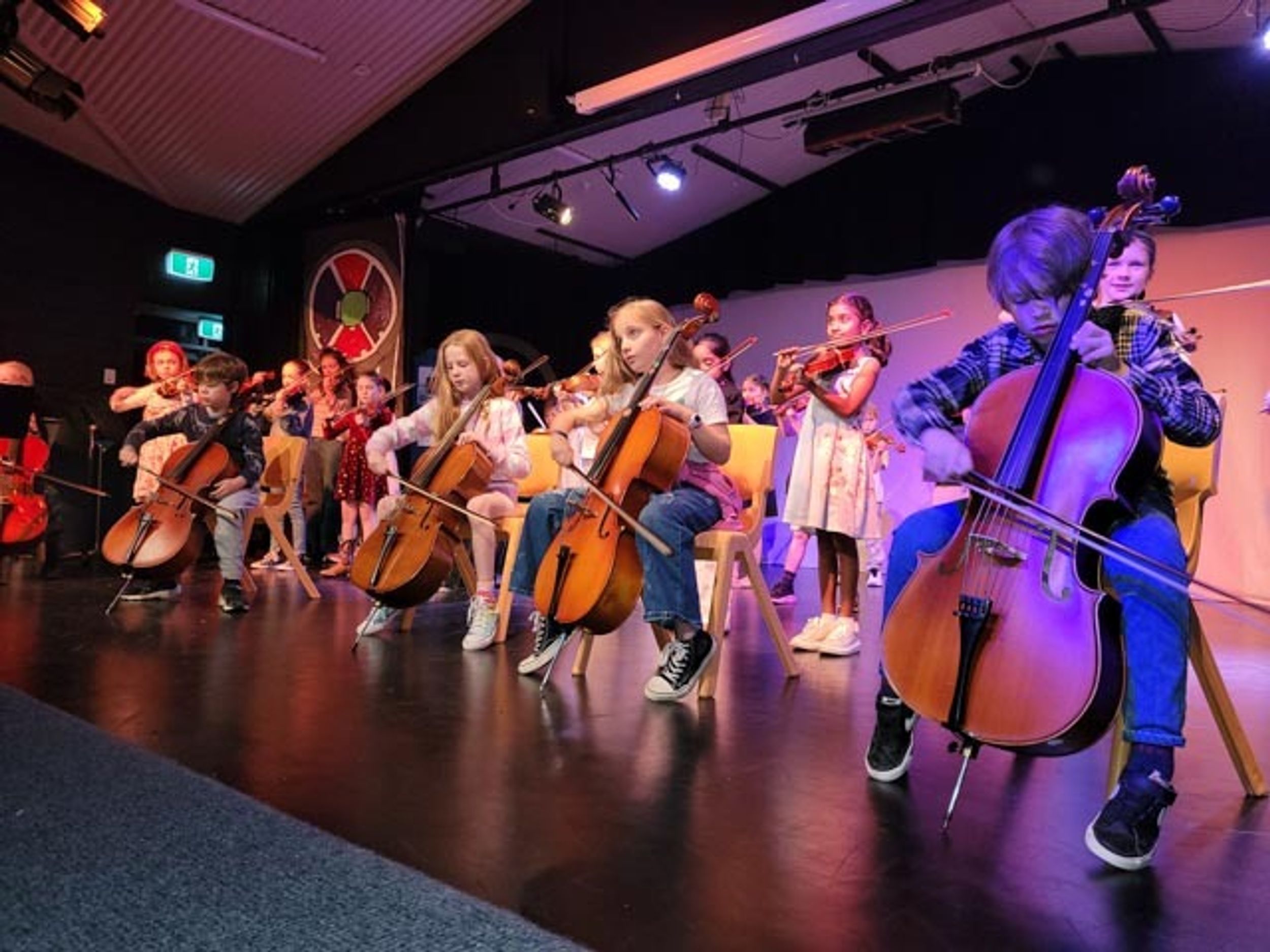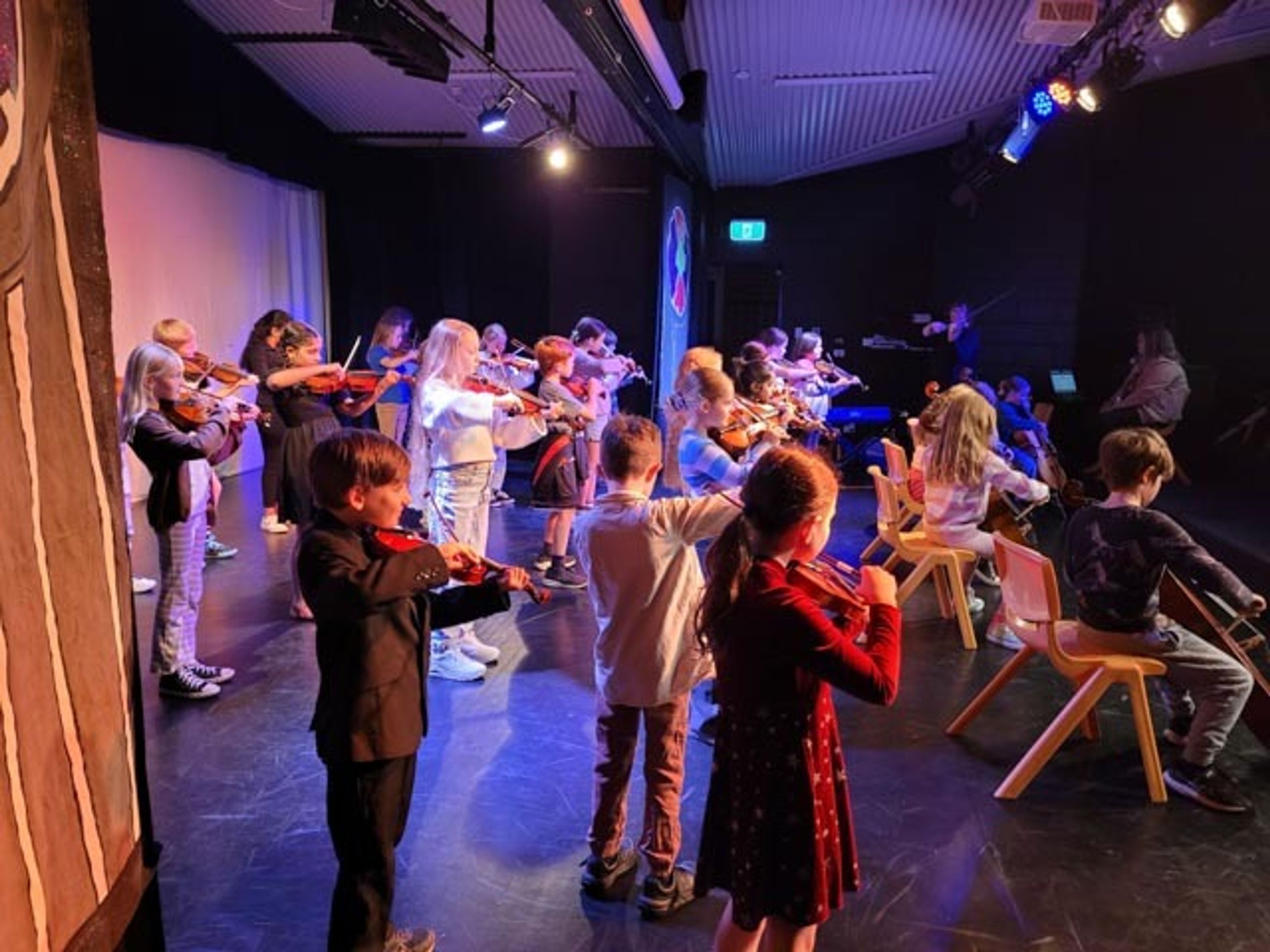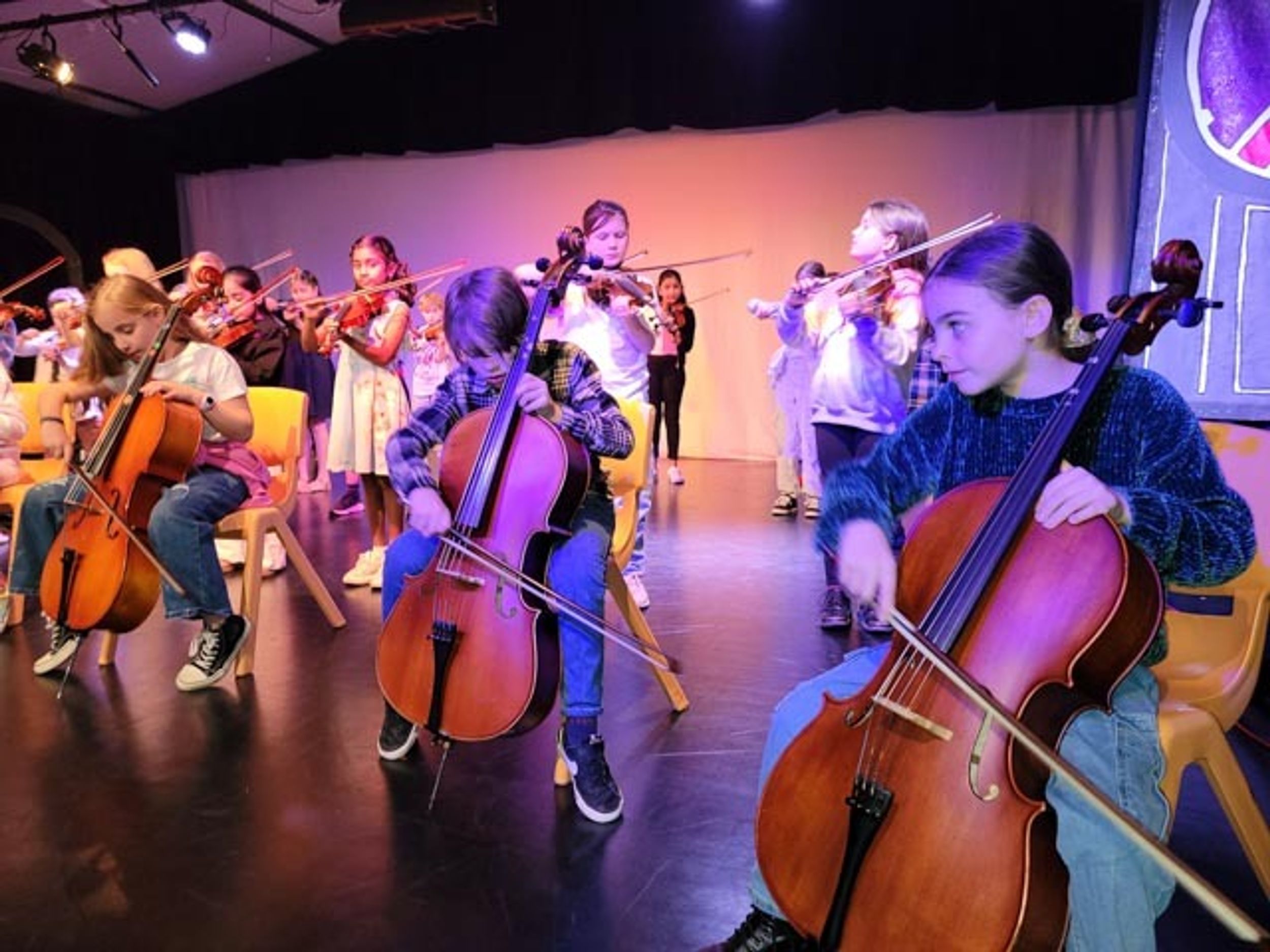 On Monday afternoon, Sandra Smith held the Semester 1 Year 3 strings concert. The concert was held in the Theatre and was an opportunity for students in Year 3 who were learning violin or cello in Semester 1 to perform in a concert to their parents, showcasing what they have learned.