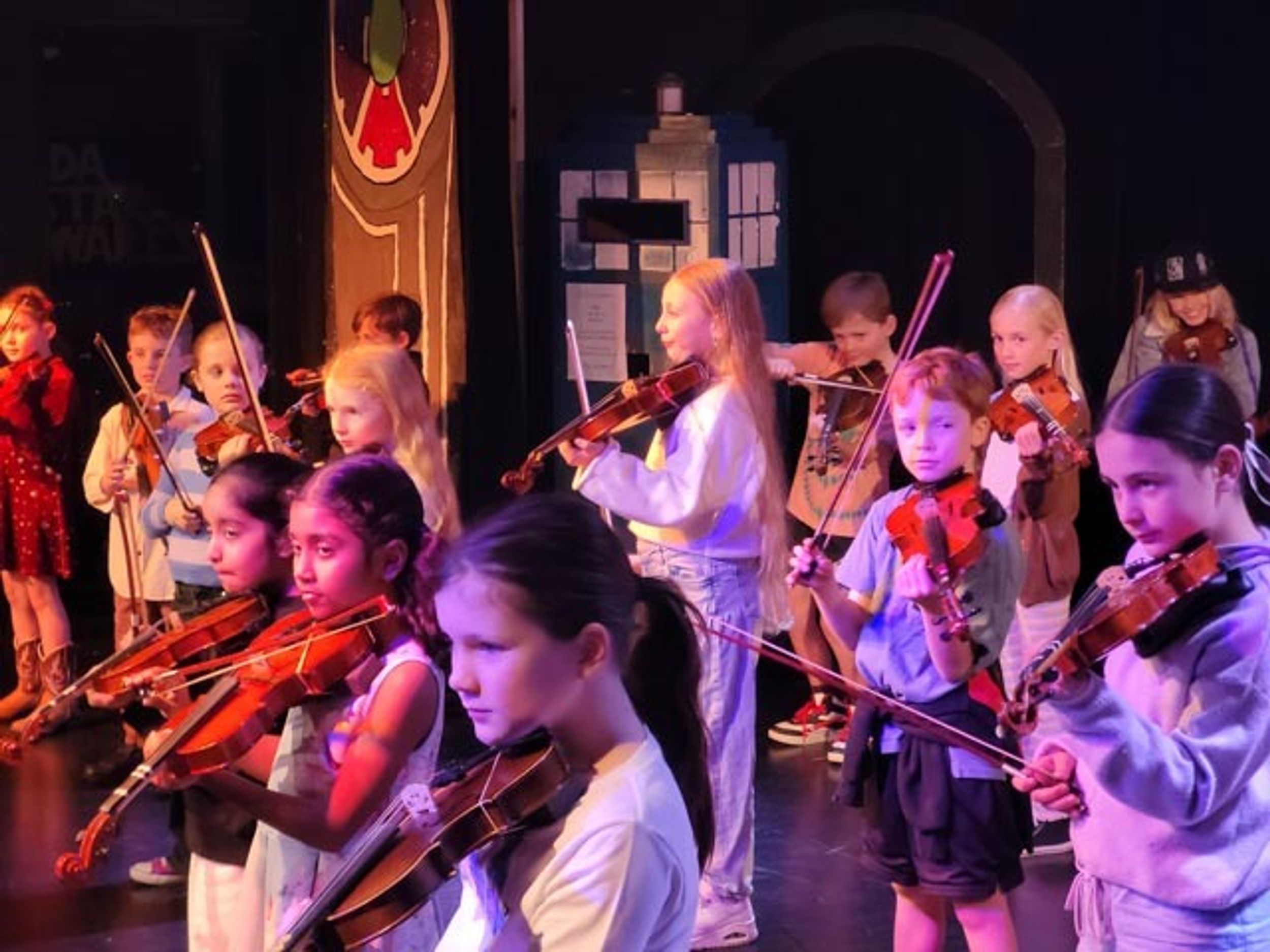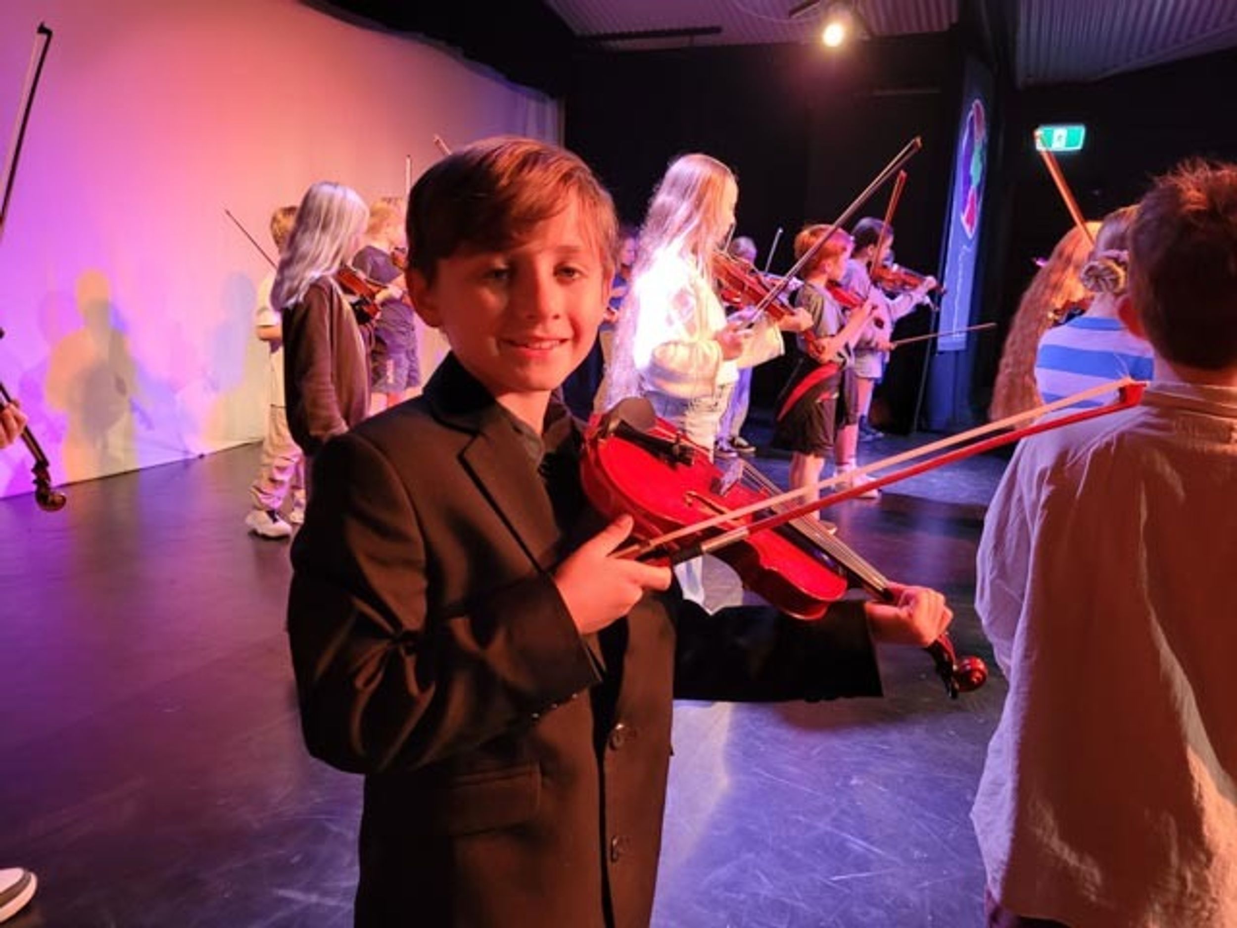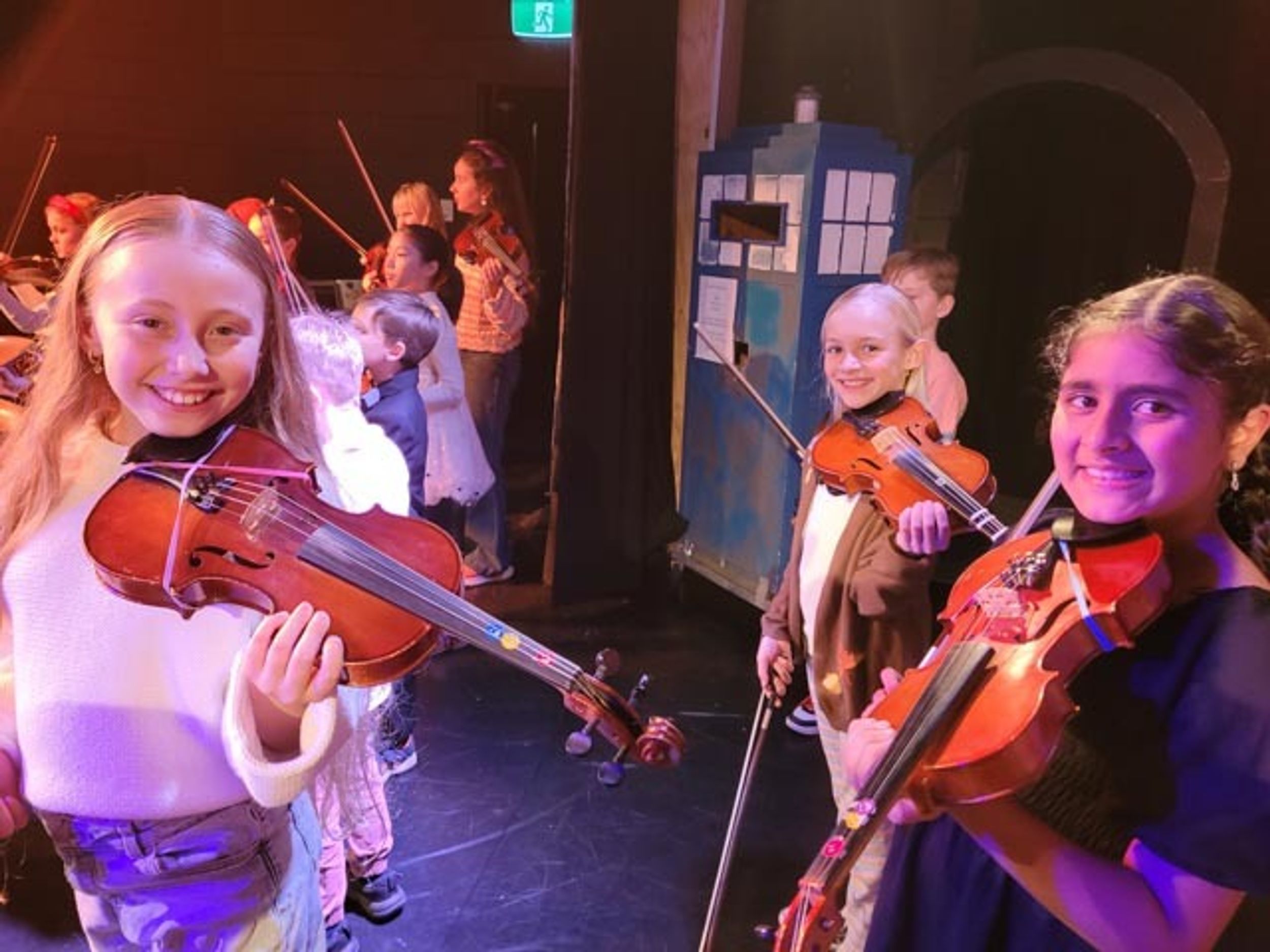 On Monday afternoon, Sandra Smith held the Semester 1 Year 3 strings concert. The concert was held in the Theatre and was an opportunity for students in Year 3 who were learning violin or cello in Semester 1 to perform in a concert to their parents, showcasing what they have learned.