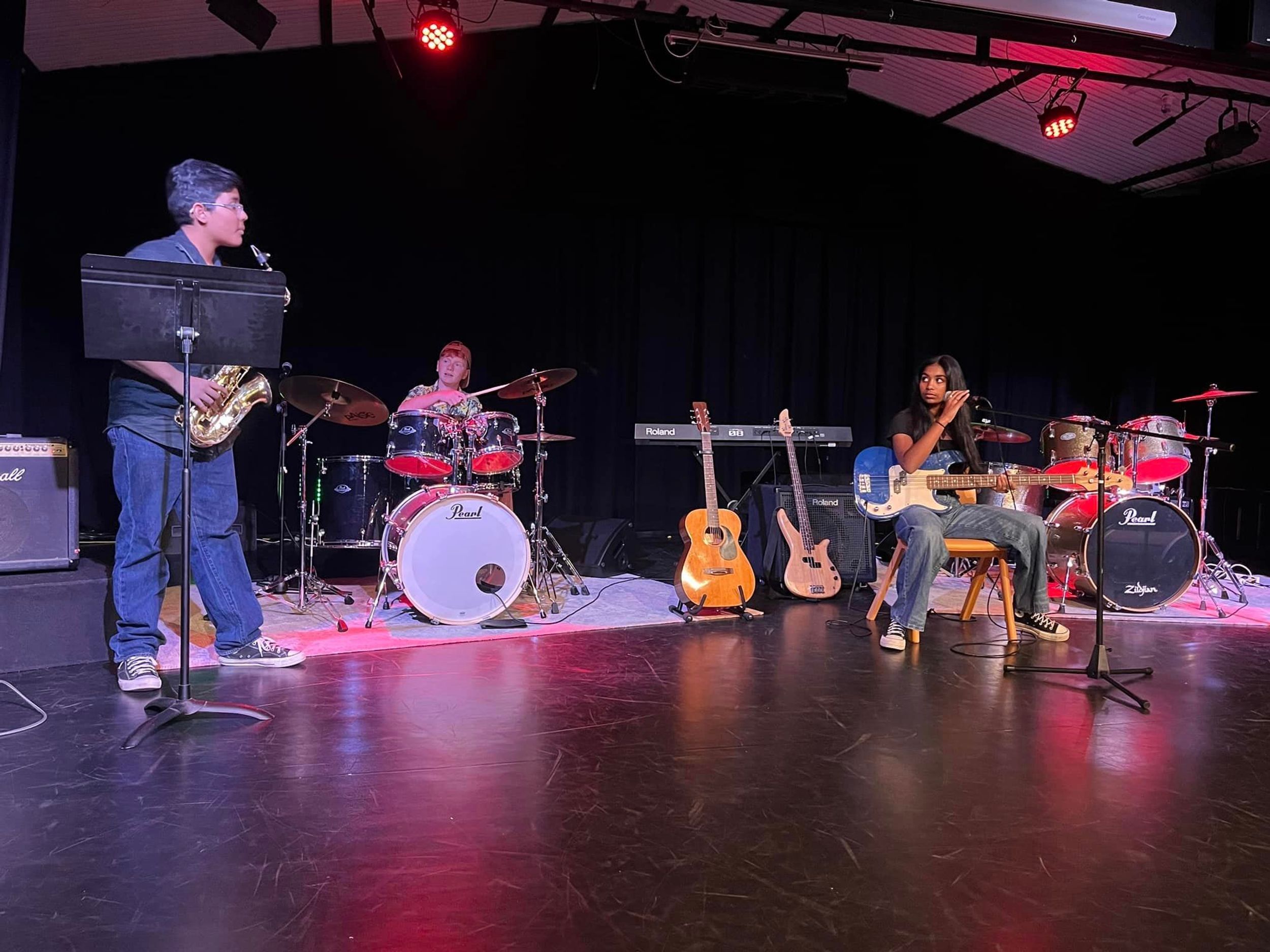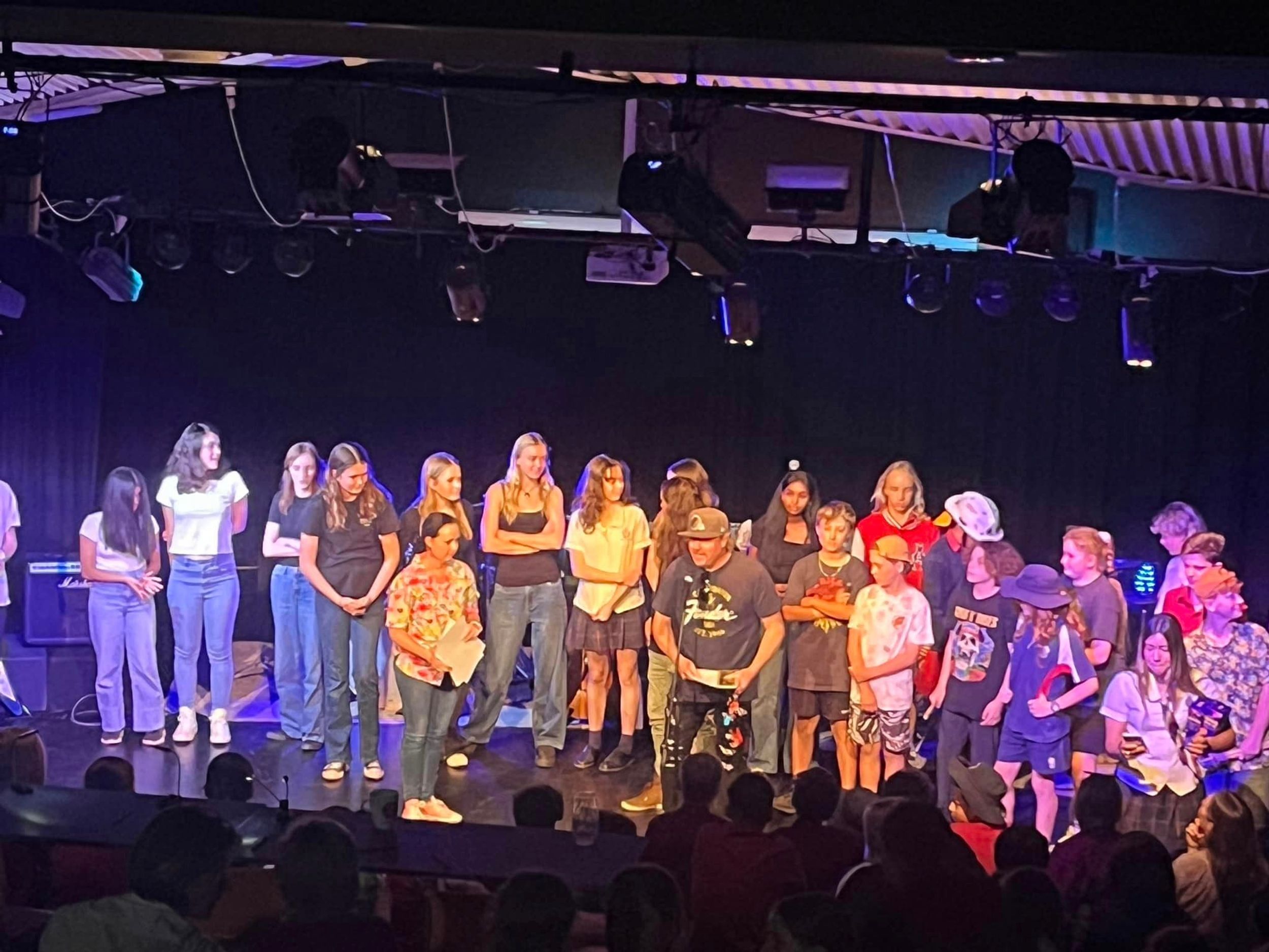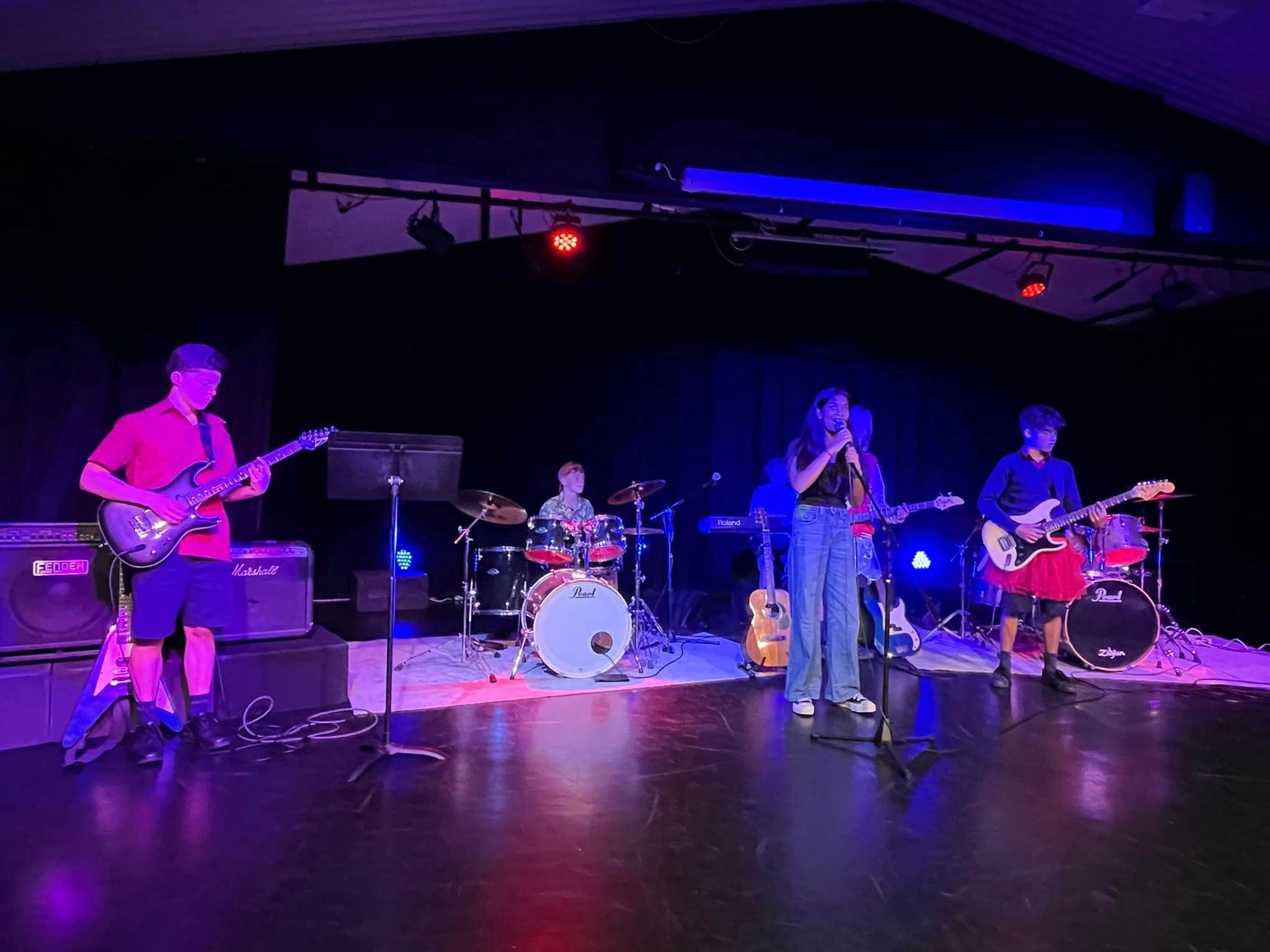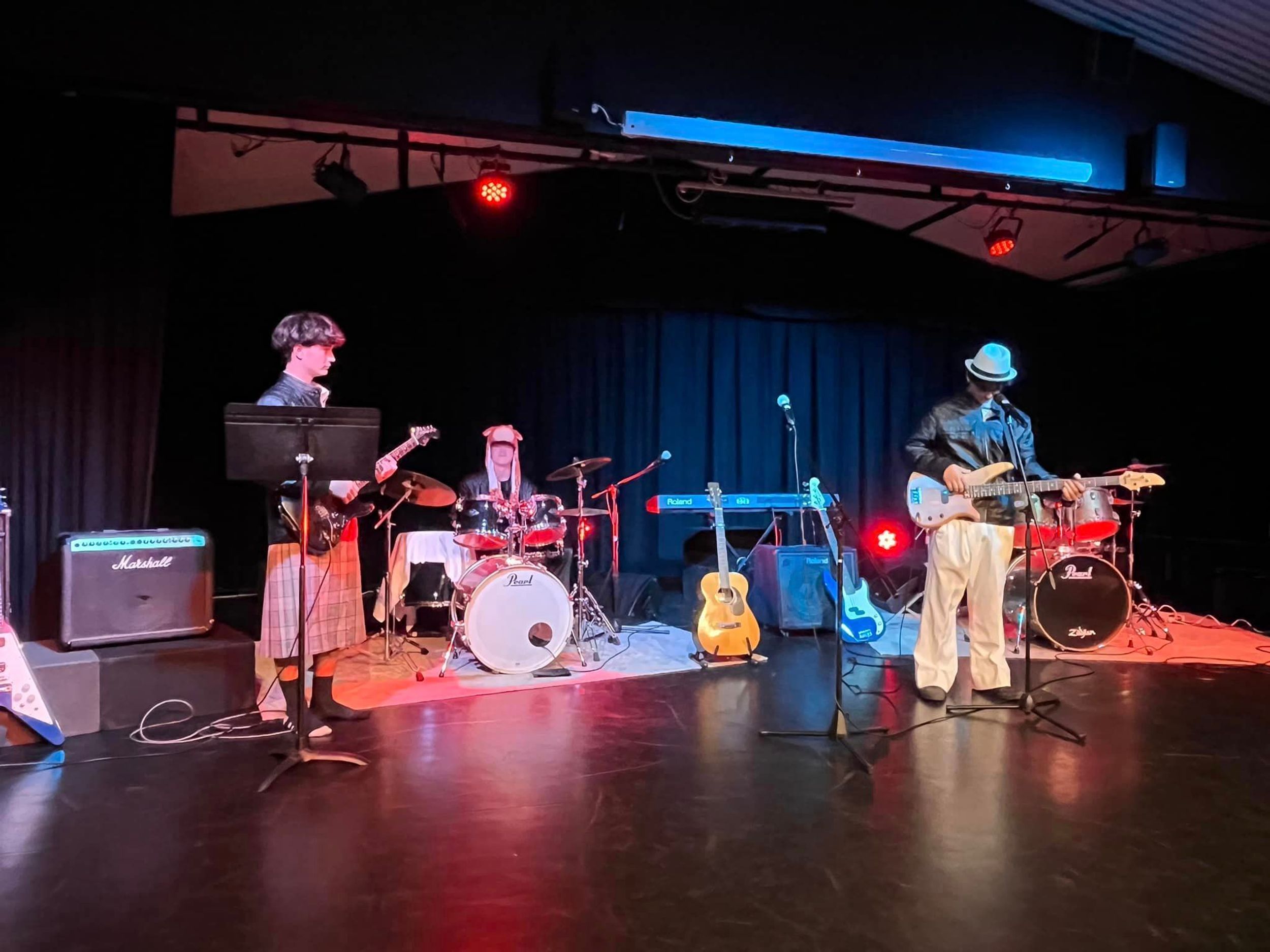 On Friday 6th September, BDC held our first Battle of the Bands competition in the College theatre. We had 8 bands enter with students ranging from Primary through to Year 11 covering a range of styles of rock. Most bands had been rehearsing for 3 terms and did an amazing job. Judges included BDC drum tutor Mr Abe Camden, Head of Colemans Music and Rockfest co-ordinator Mr Luc Travers and Head of Faculty Ms Rebecca Day. The judges were blown away by the talent. First prize which included a recording session at Grow the Music studios in Toormina went to the Secondary Rock Band.