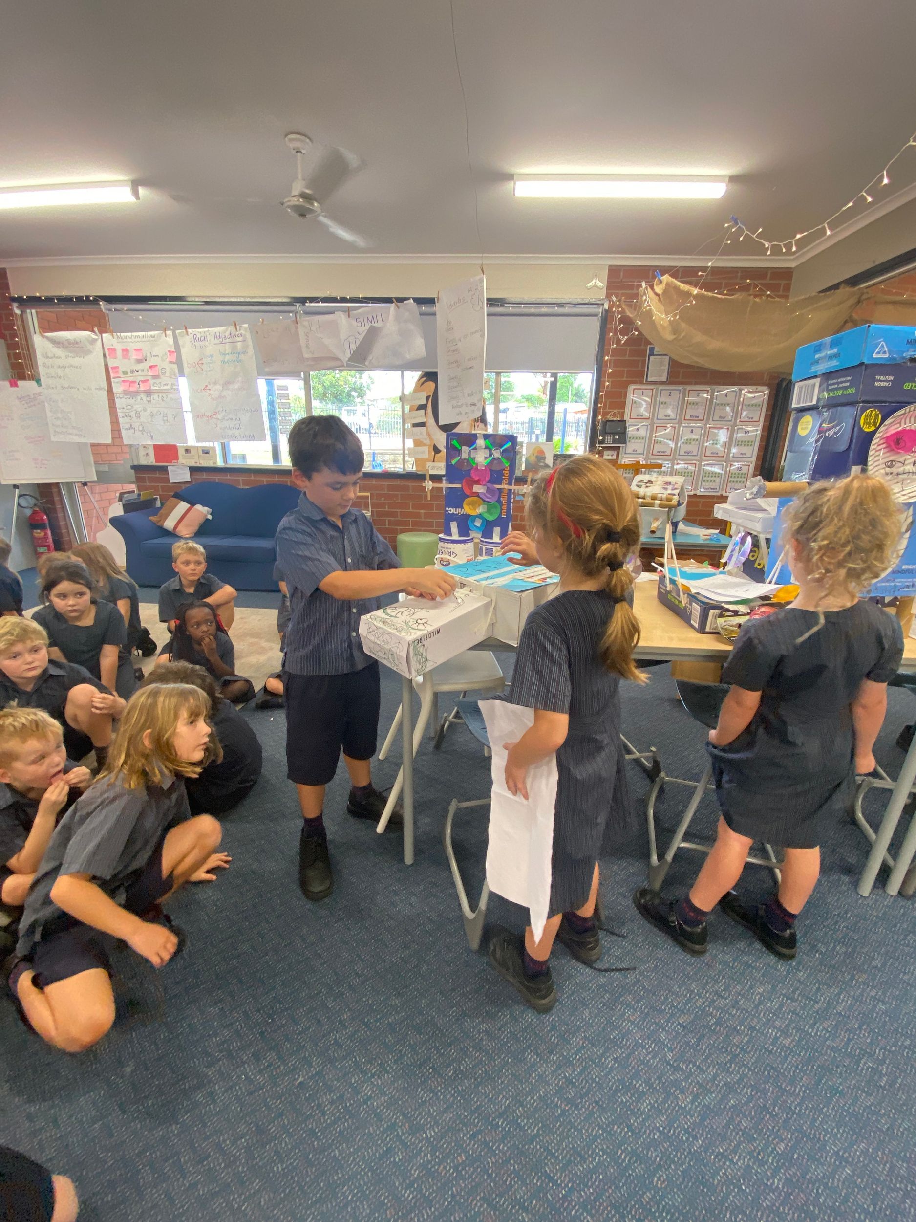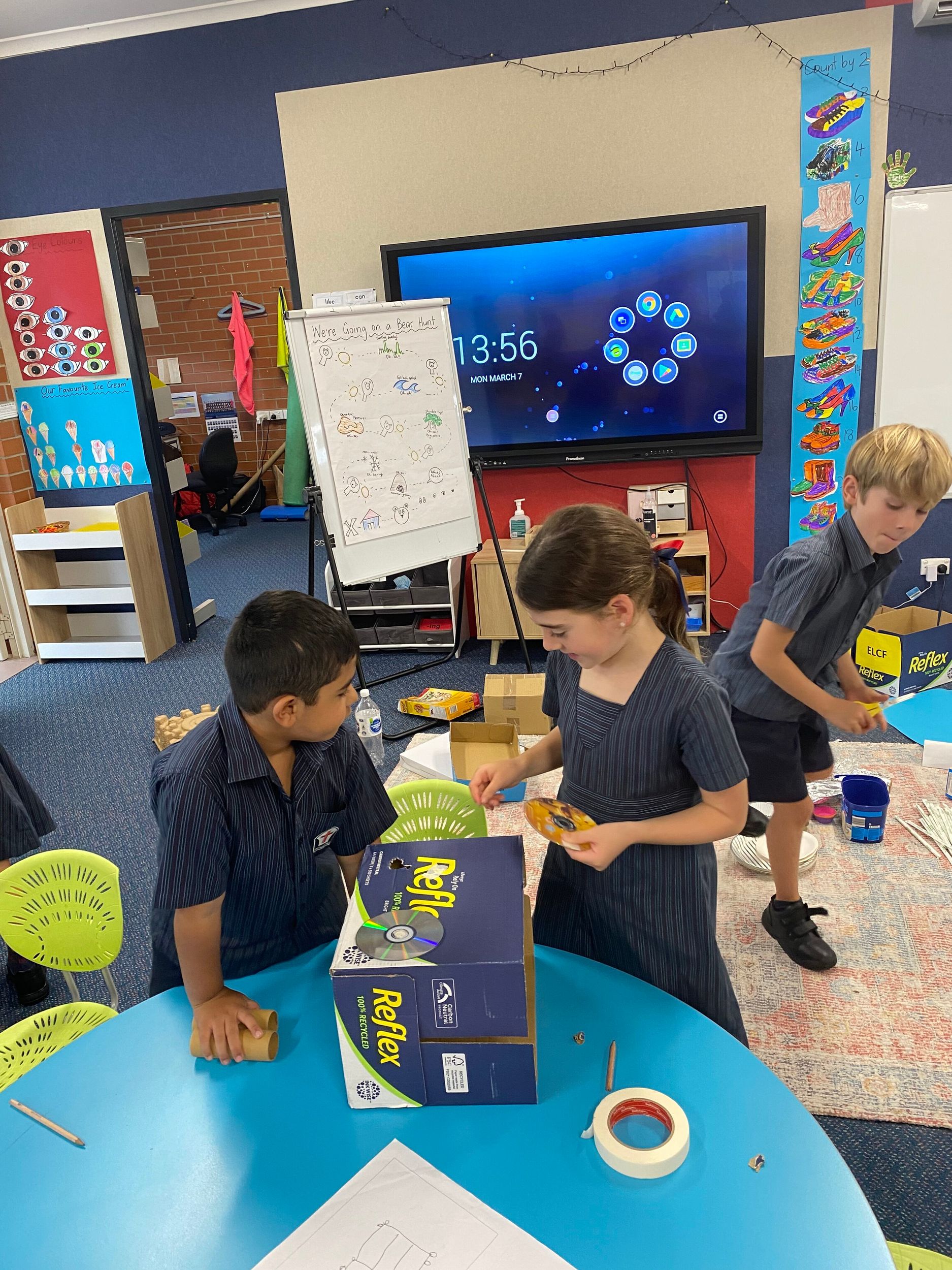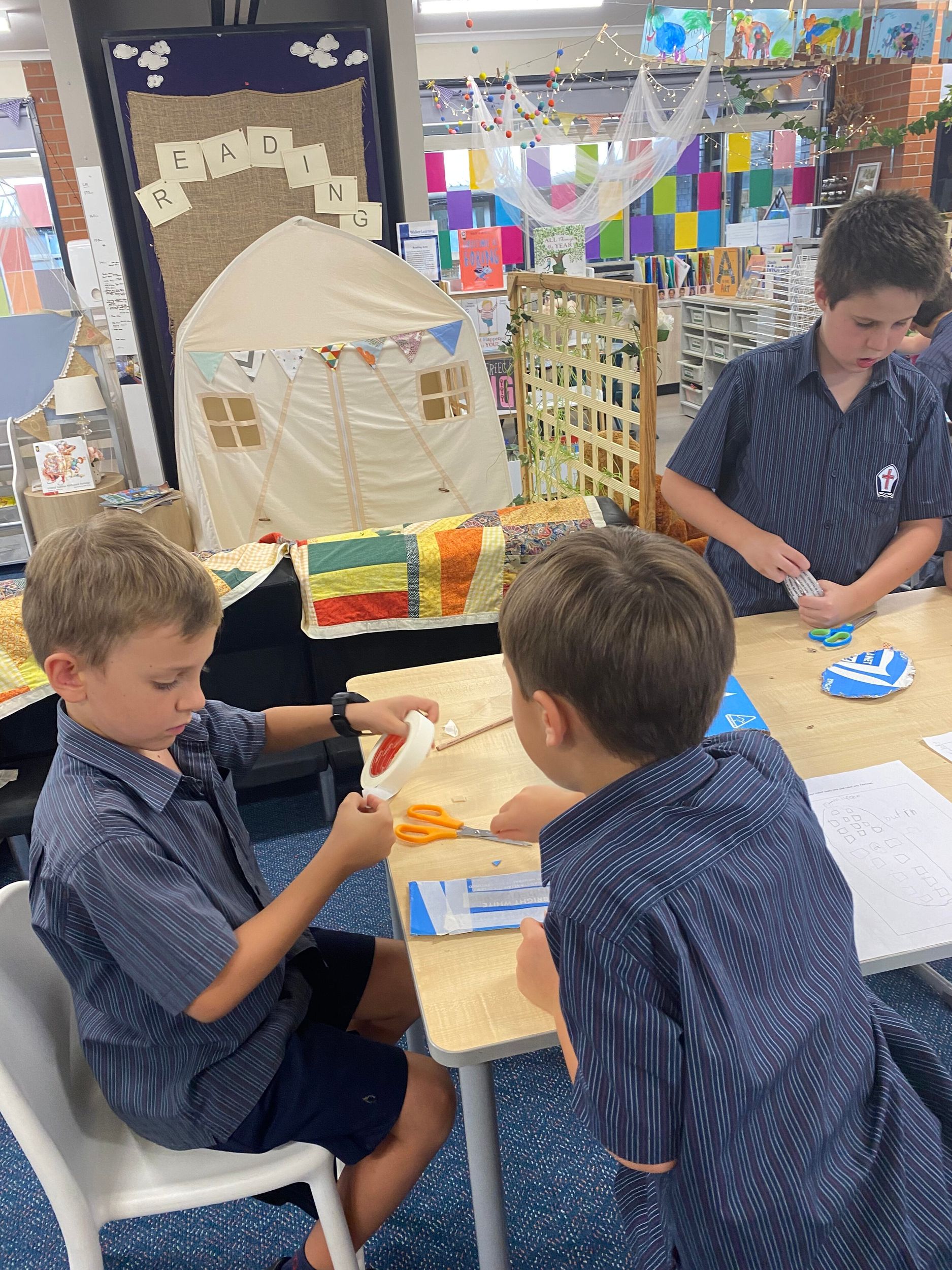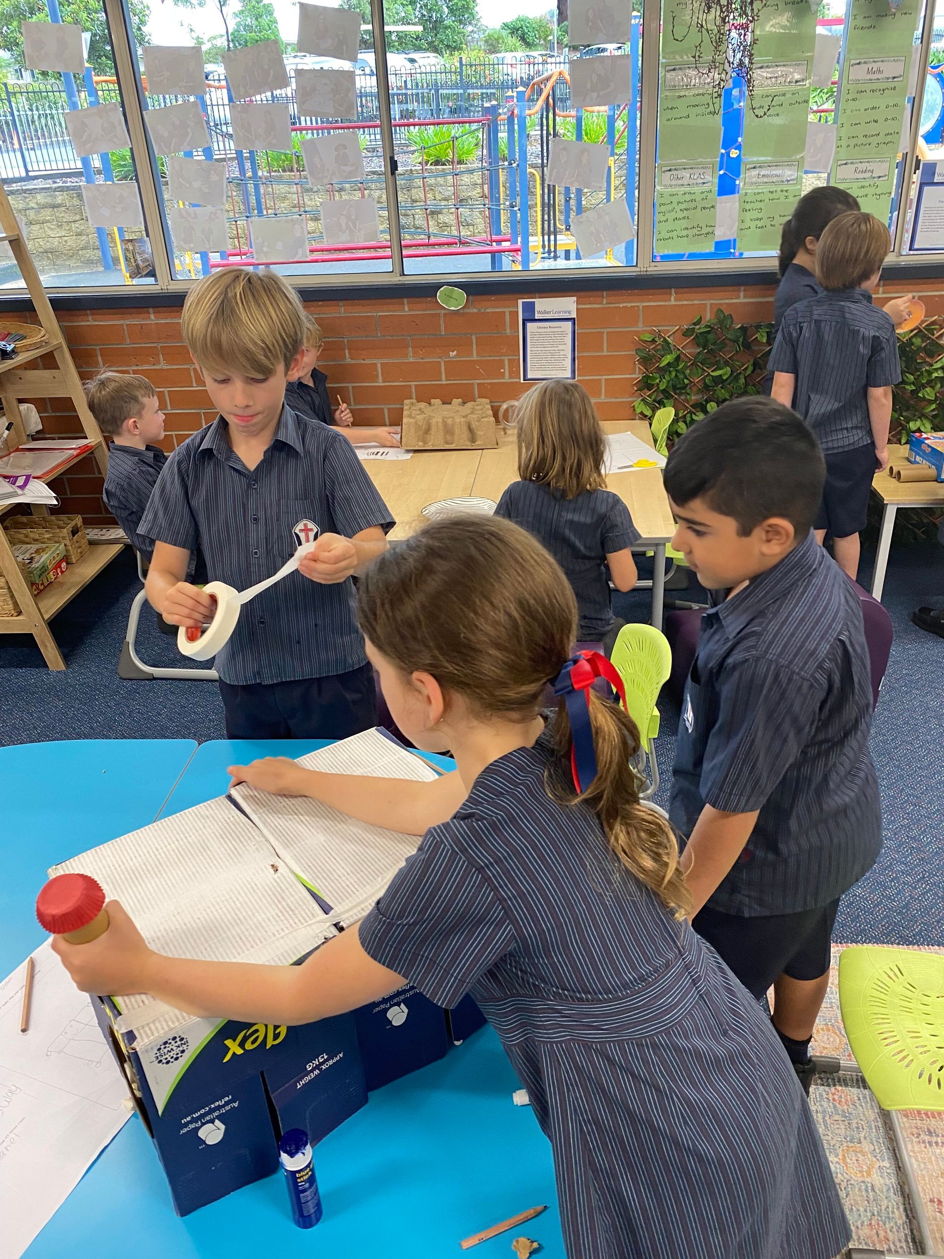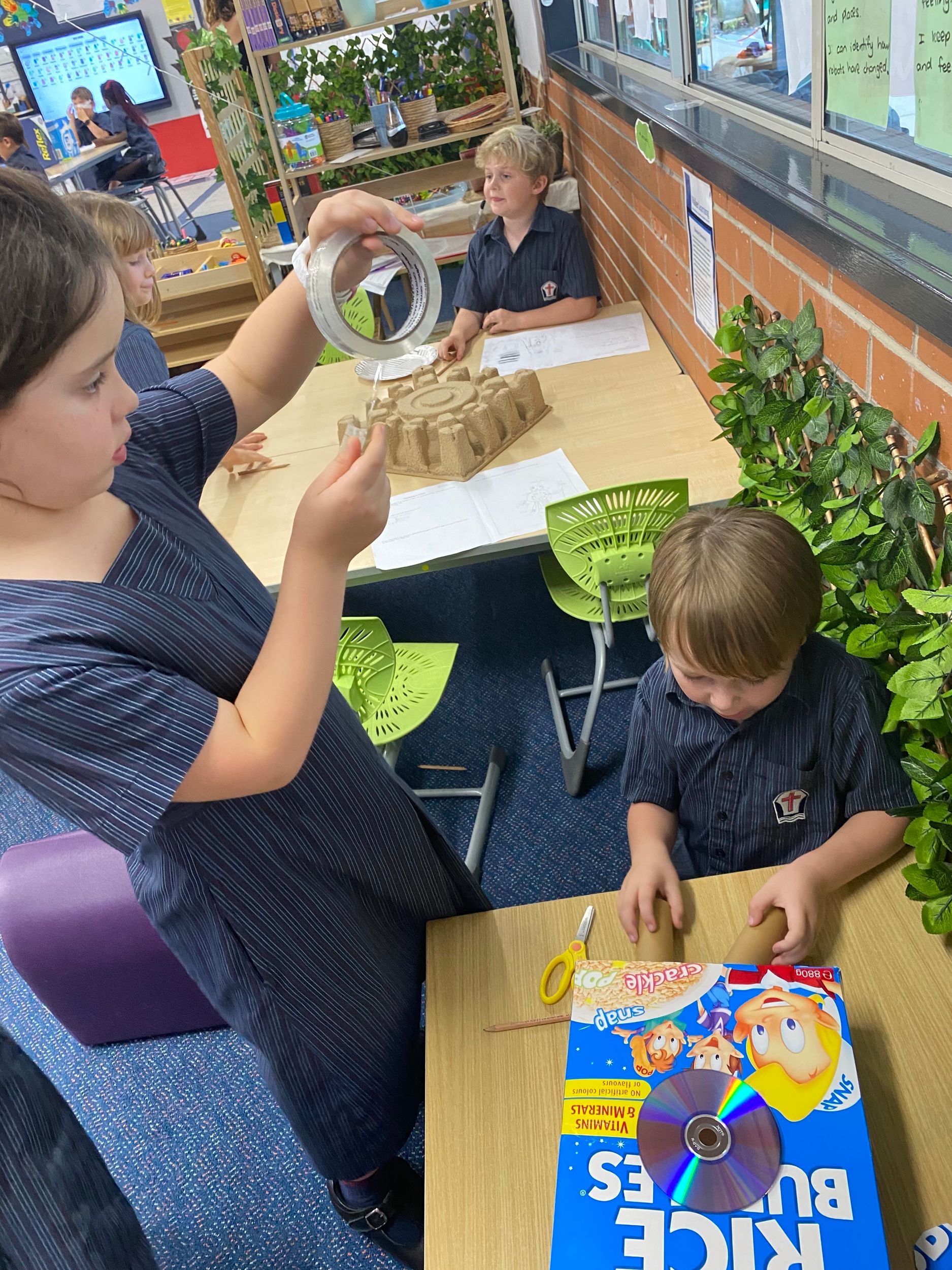 This term in the ELC we have been learning about change and innovation in Science lessons. We have worked in our buddy groups to design and make a robot to assist in different rooms of our houses. We had to work cooperatively and compromise whilst we were working on this project. We modified our design to improve it and also during the construction stage. It was a valuable and enjoyable experience for us all.
