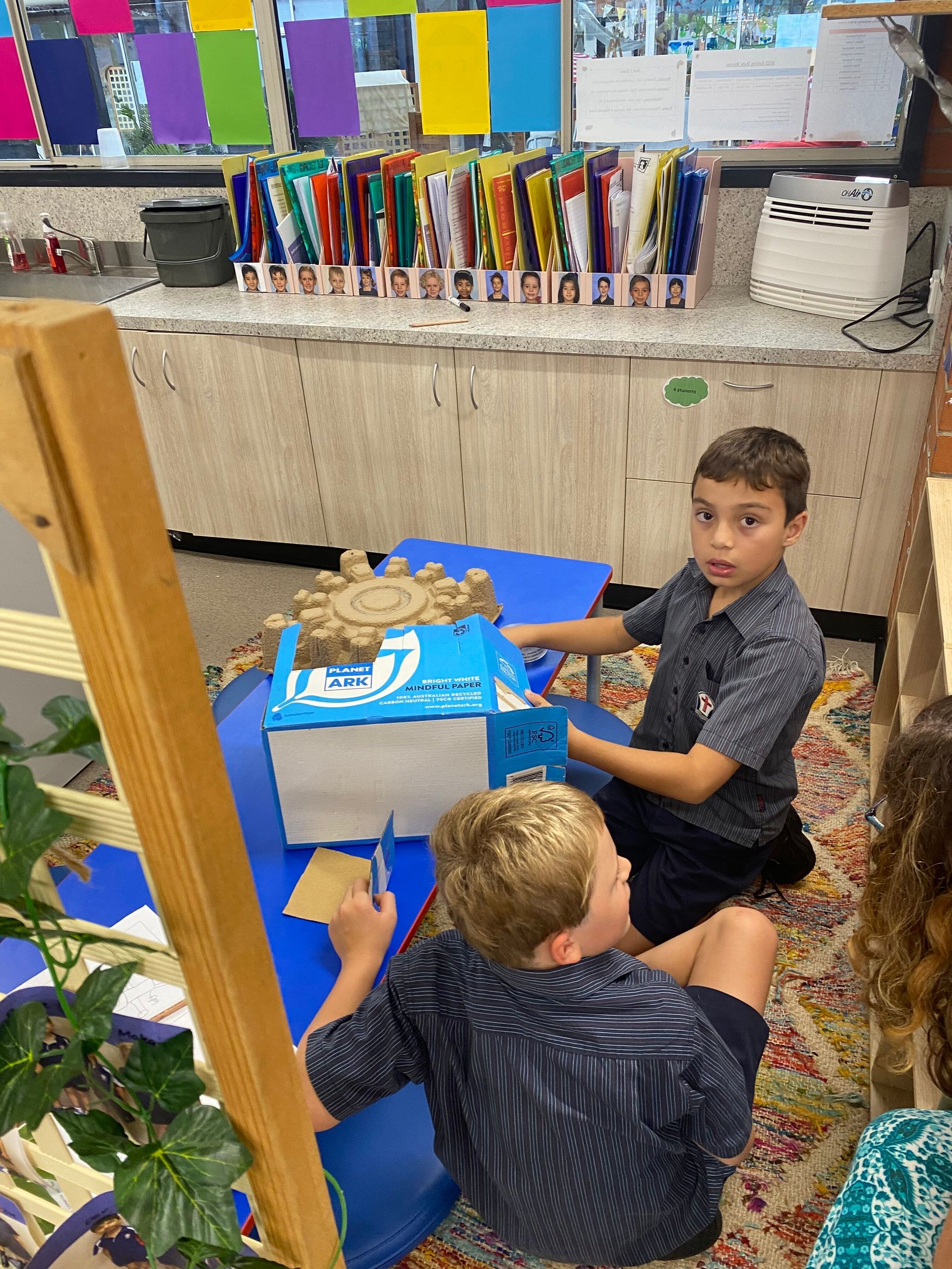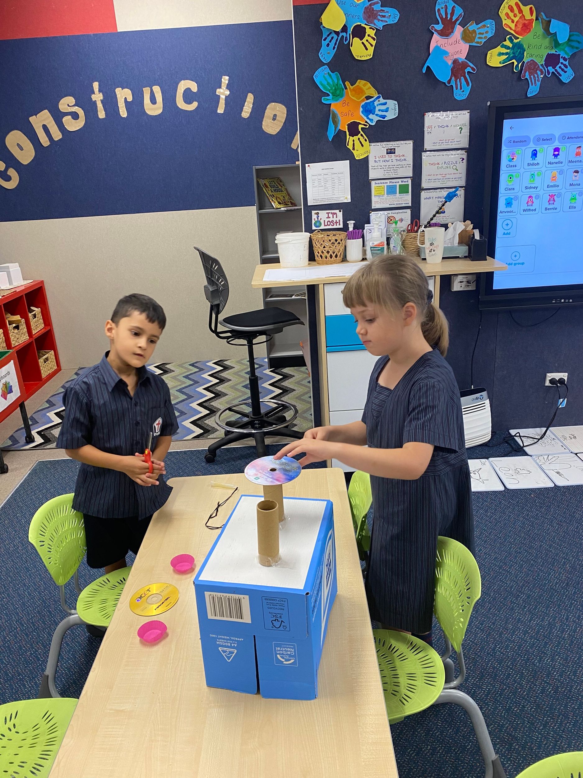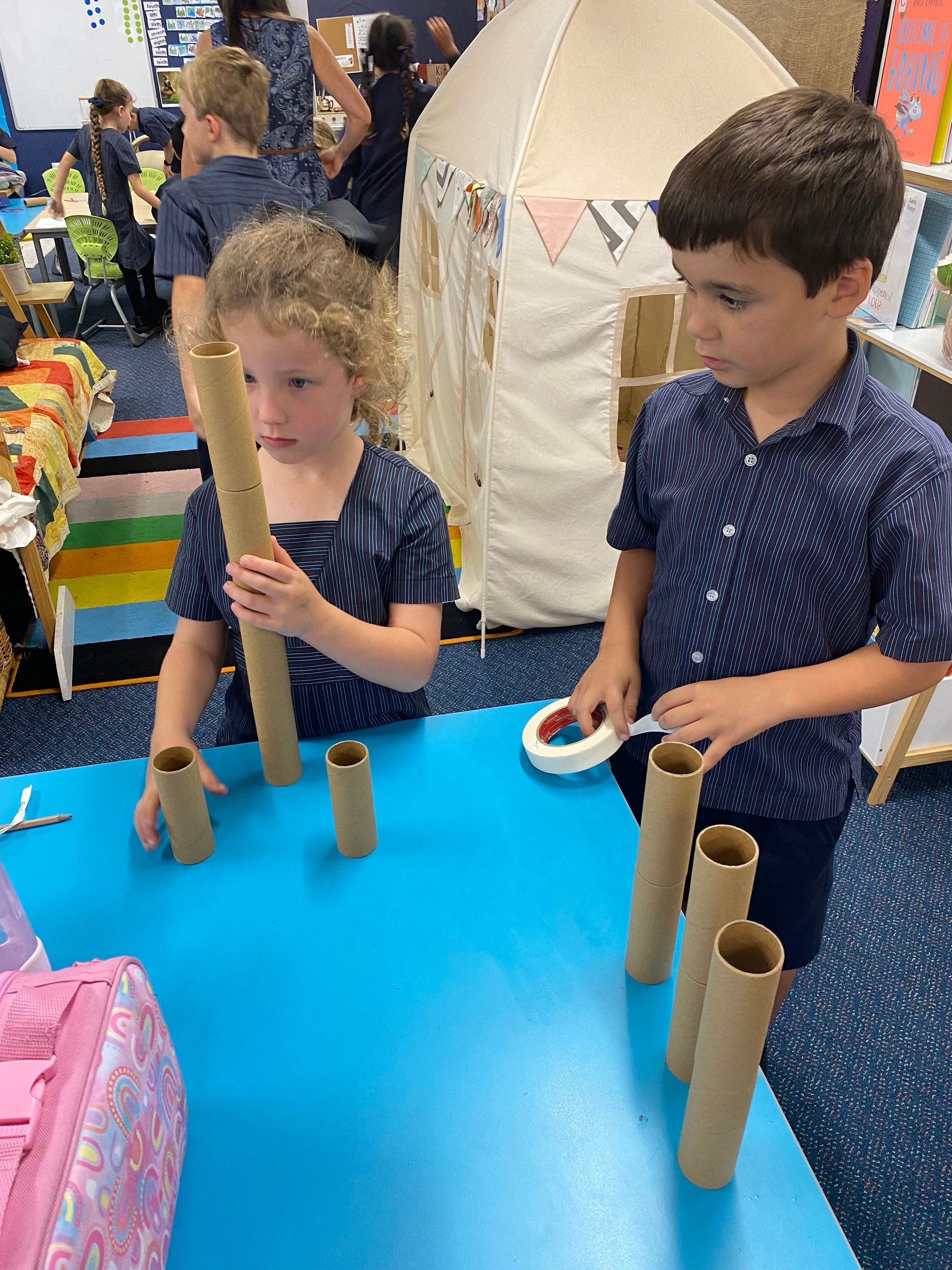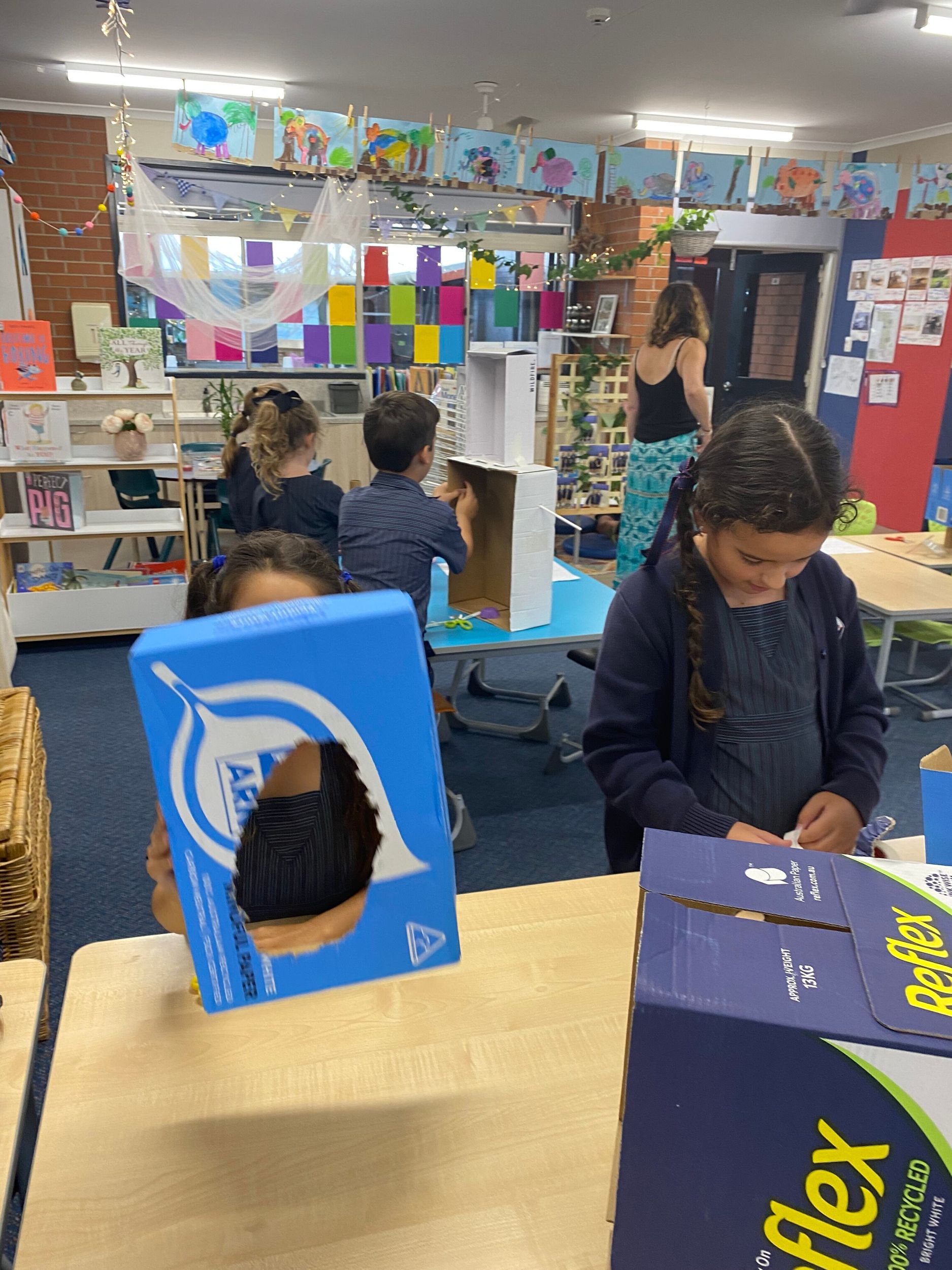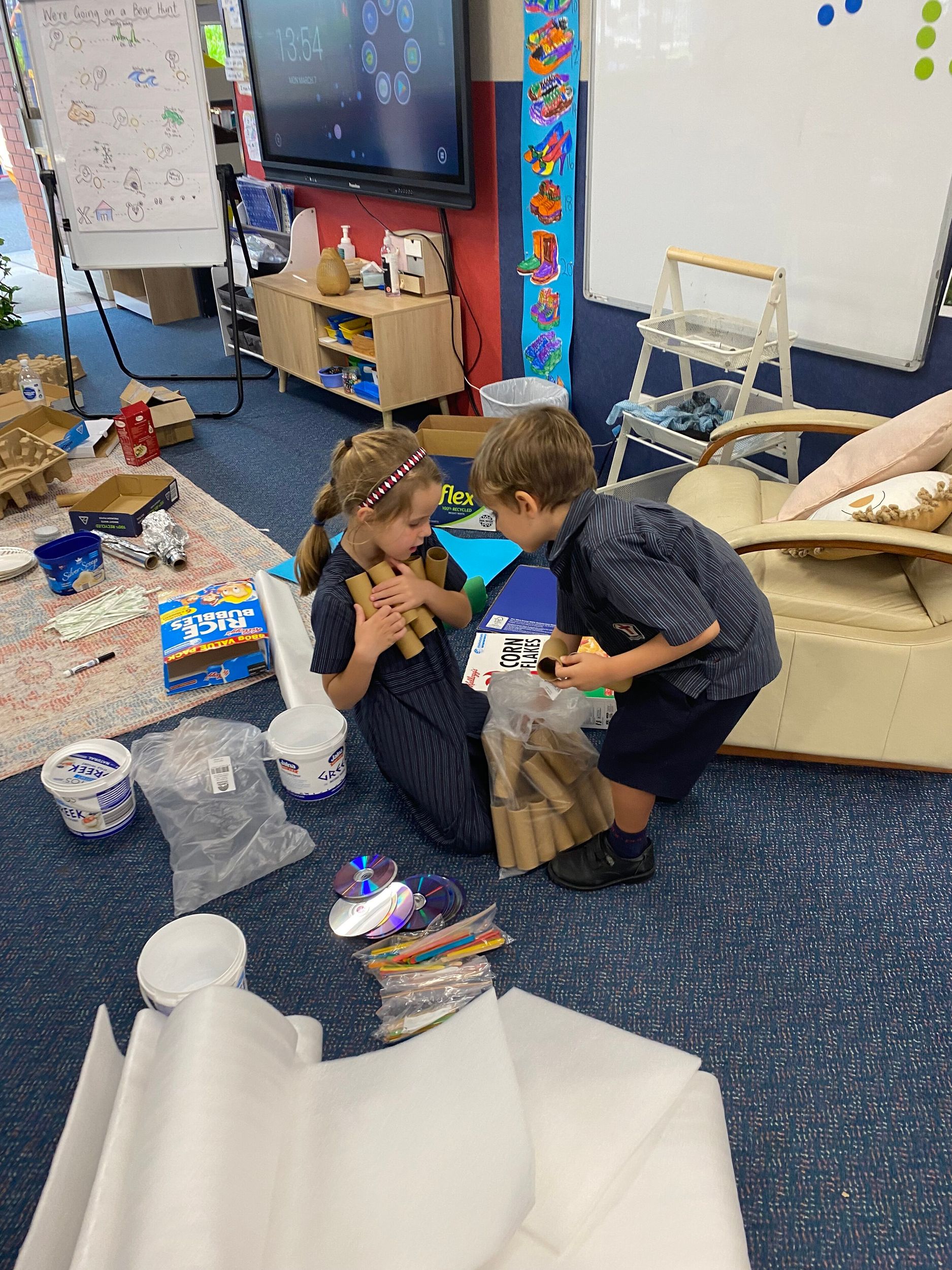 This term in the ELC we have been learning about change and innovation in Science lessons. We have worked in our buddy groups to design and make a robot to assist in different rooms of our houses. We had to work cooperatively and compromise whilst we were working on this project. We modified our design to improve it and also during the construction stage. It was a valuable and enjoyable experience for us all.