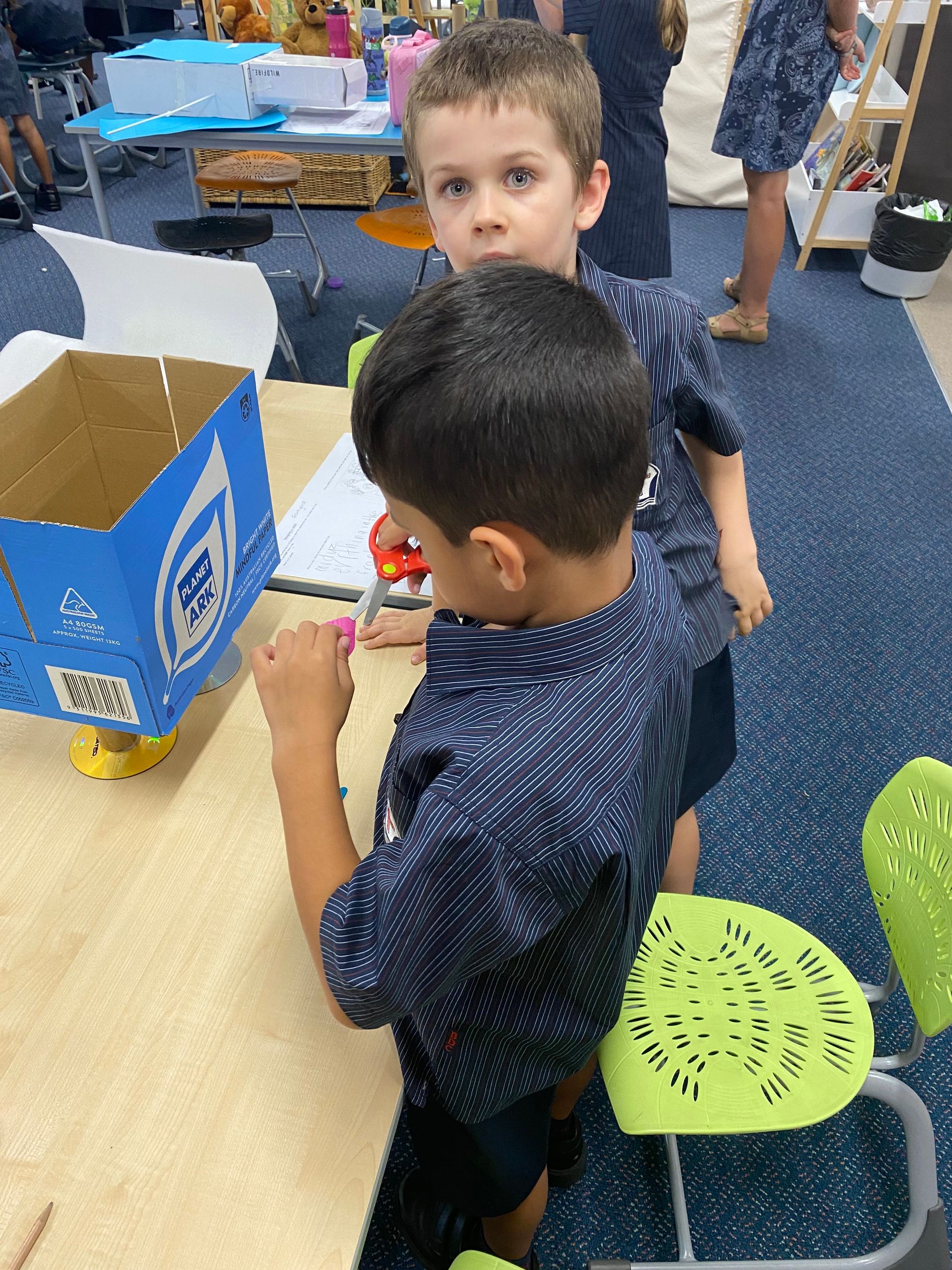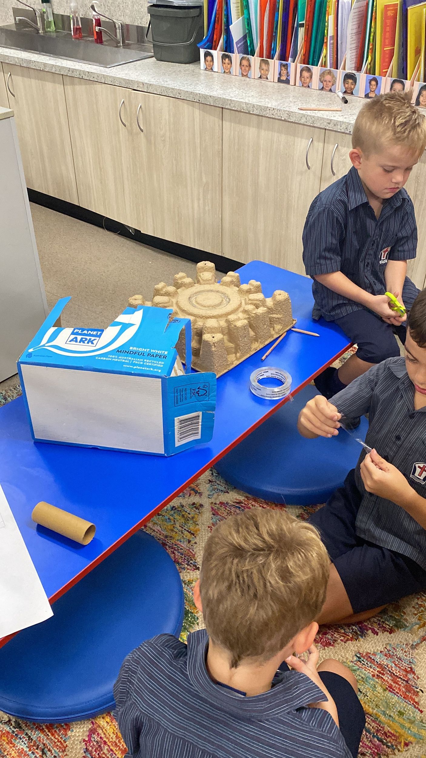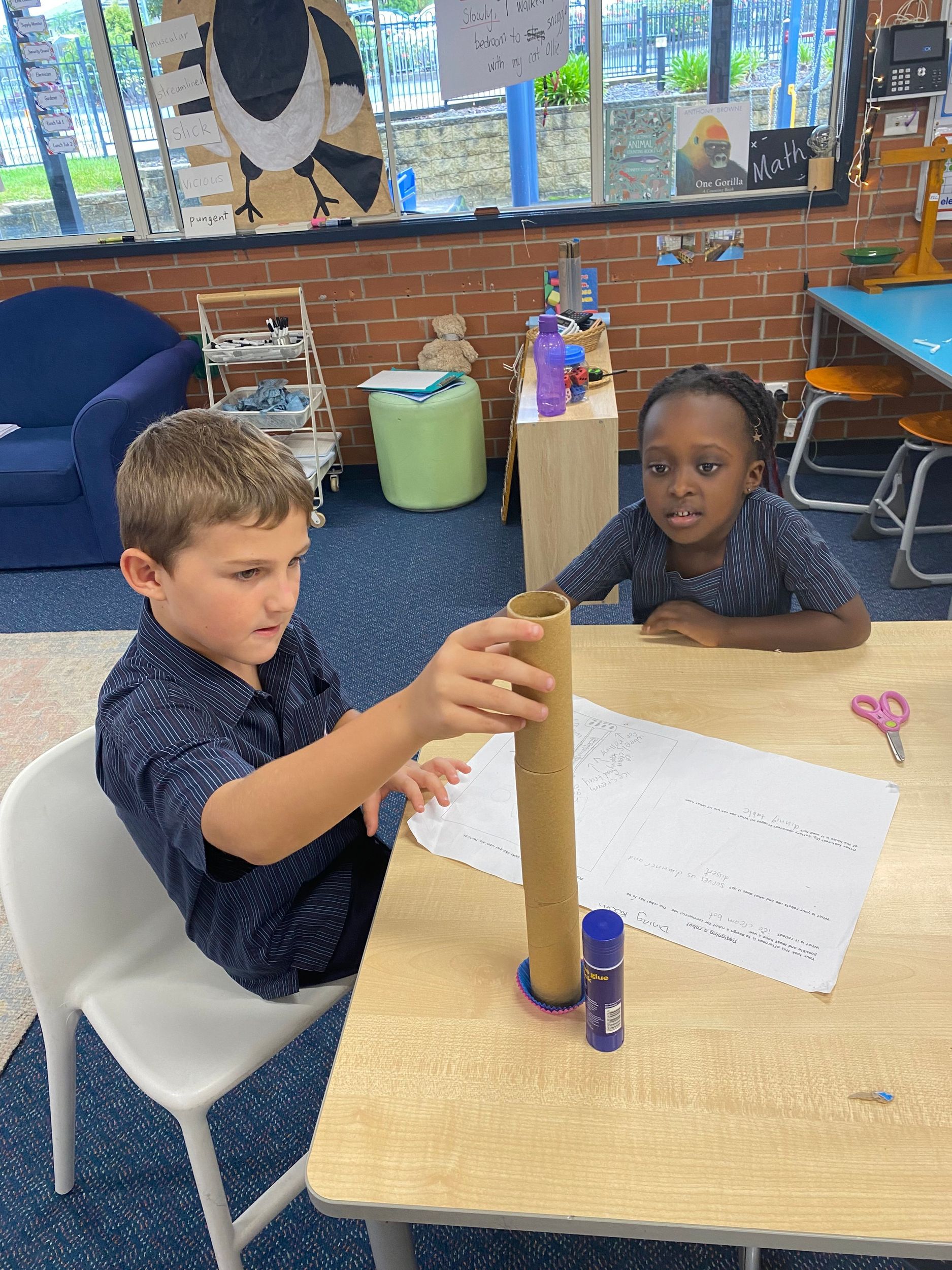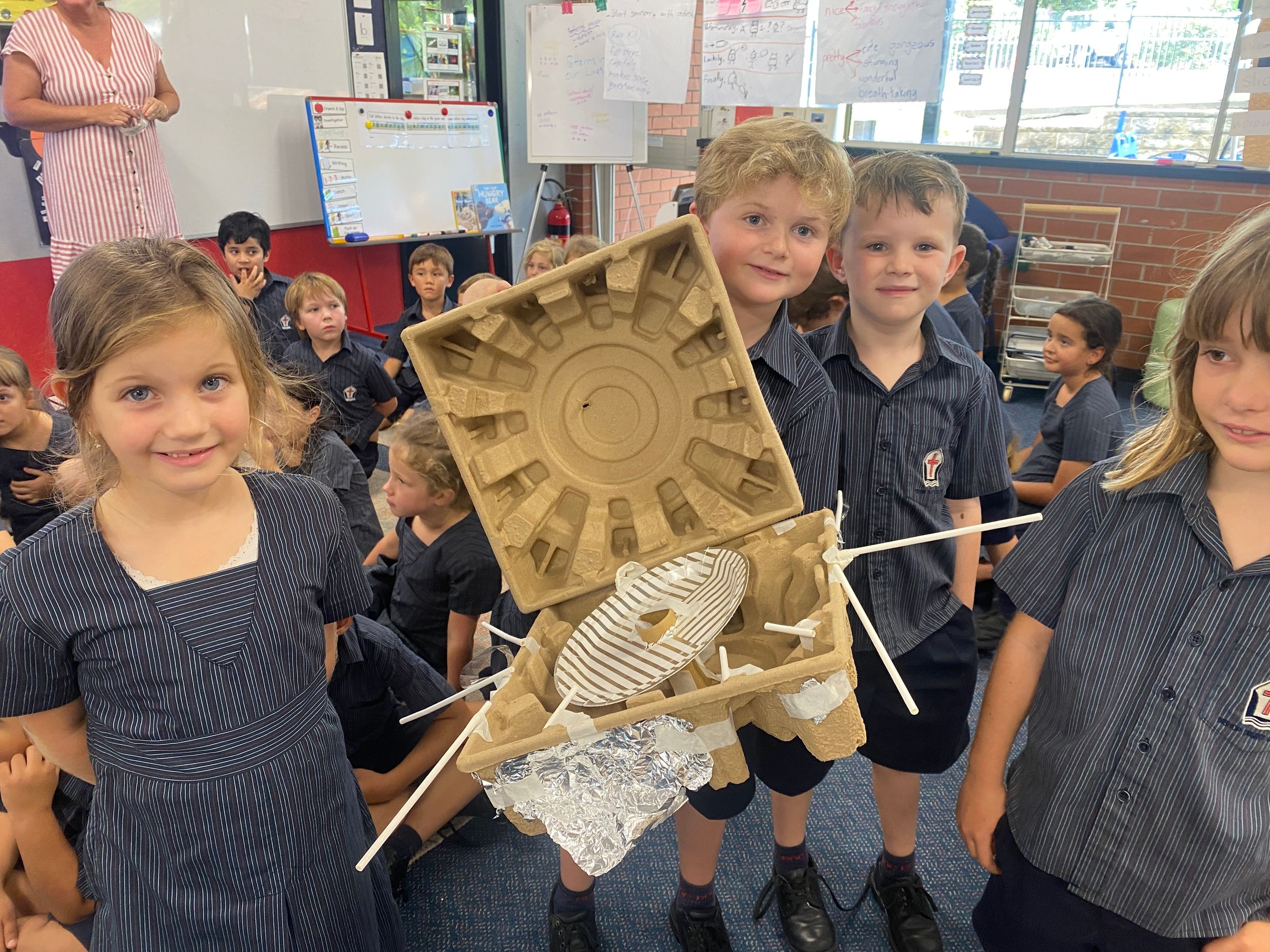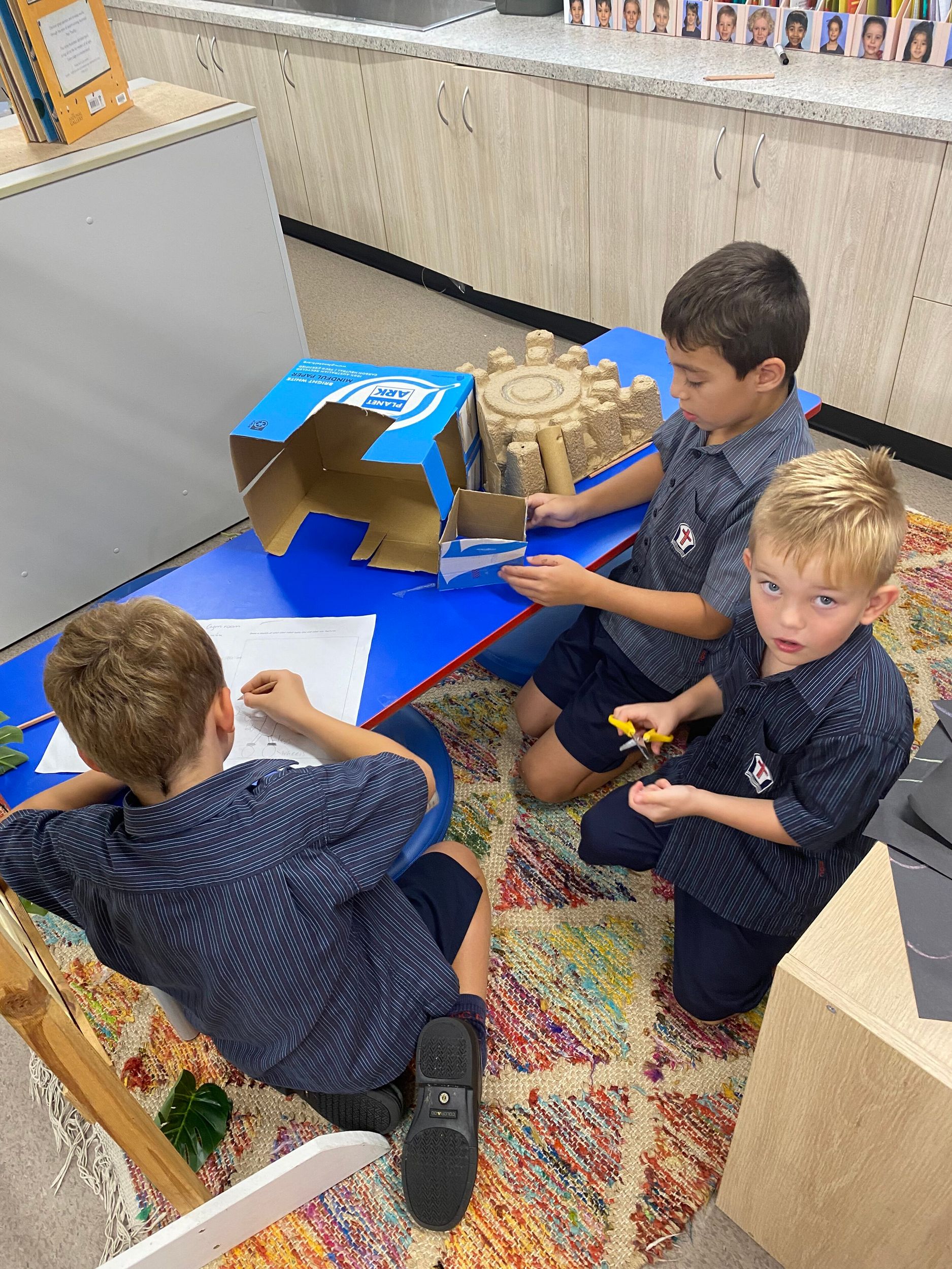 Thank you to Olivia’s mum, Mrs Miller who came to assist with the making phase. We also thank Mr Smith who enjoyed listening to our explanations of our robot designing and making and seeing our finished products.