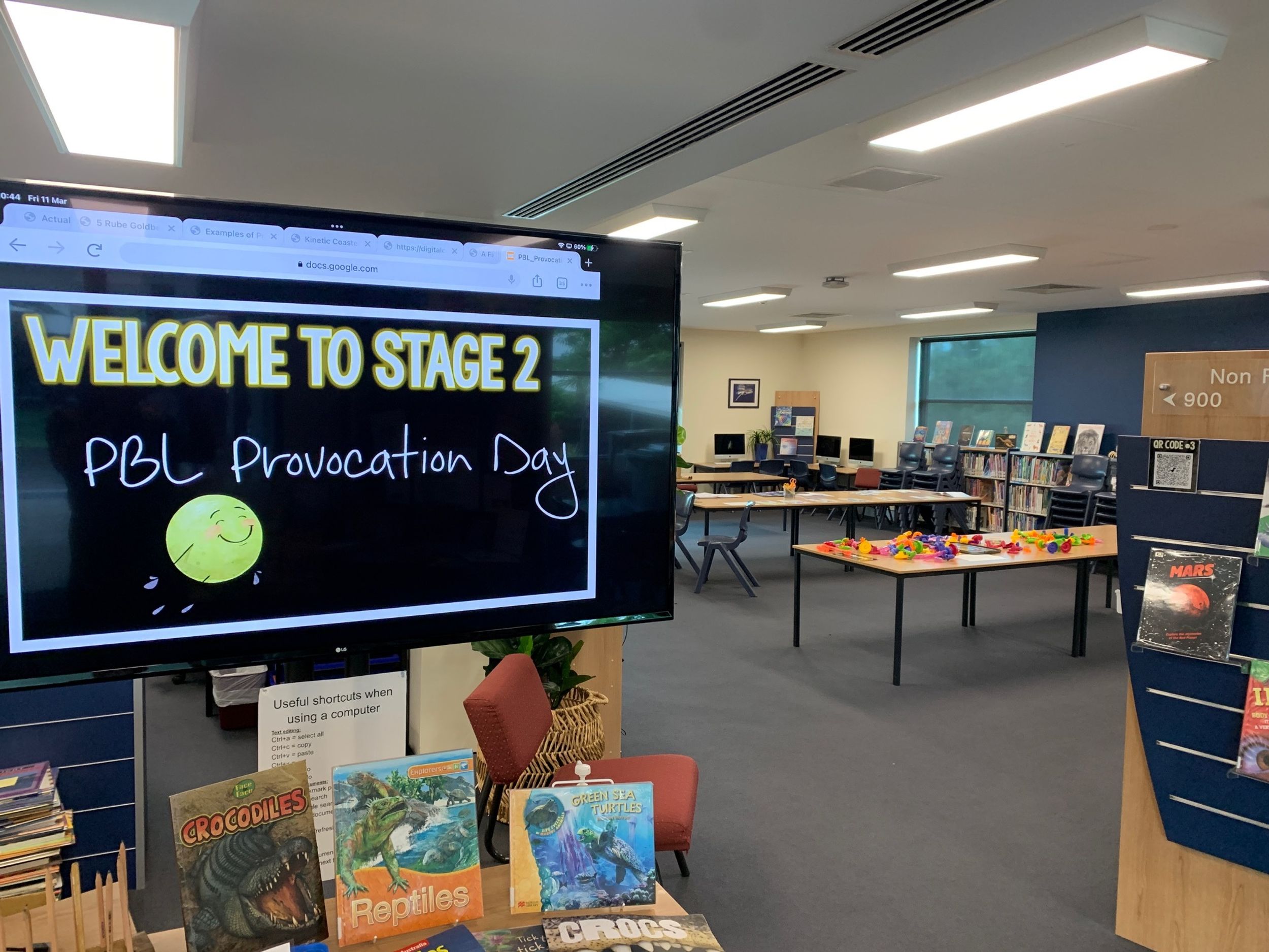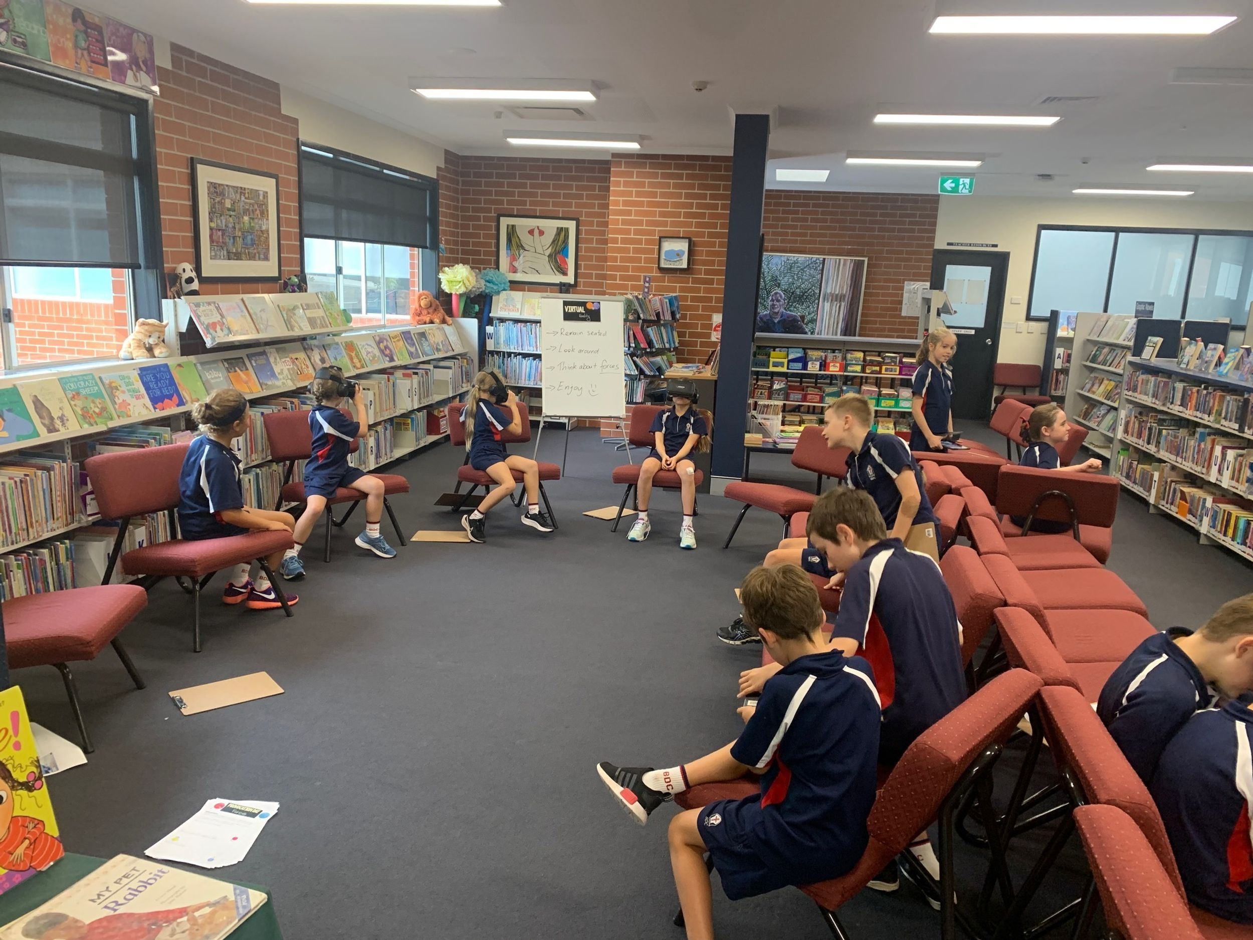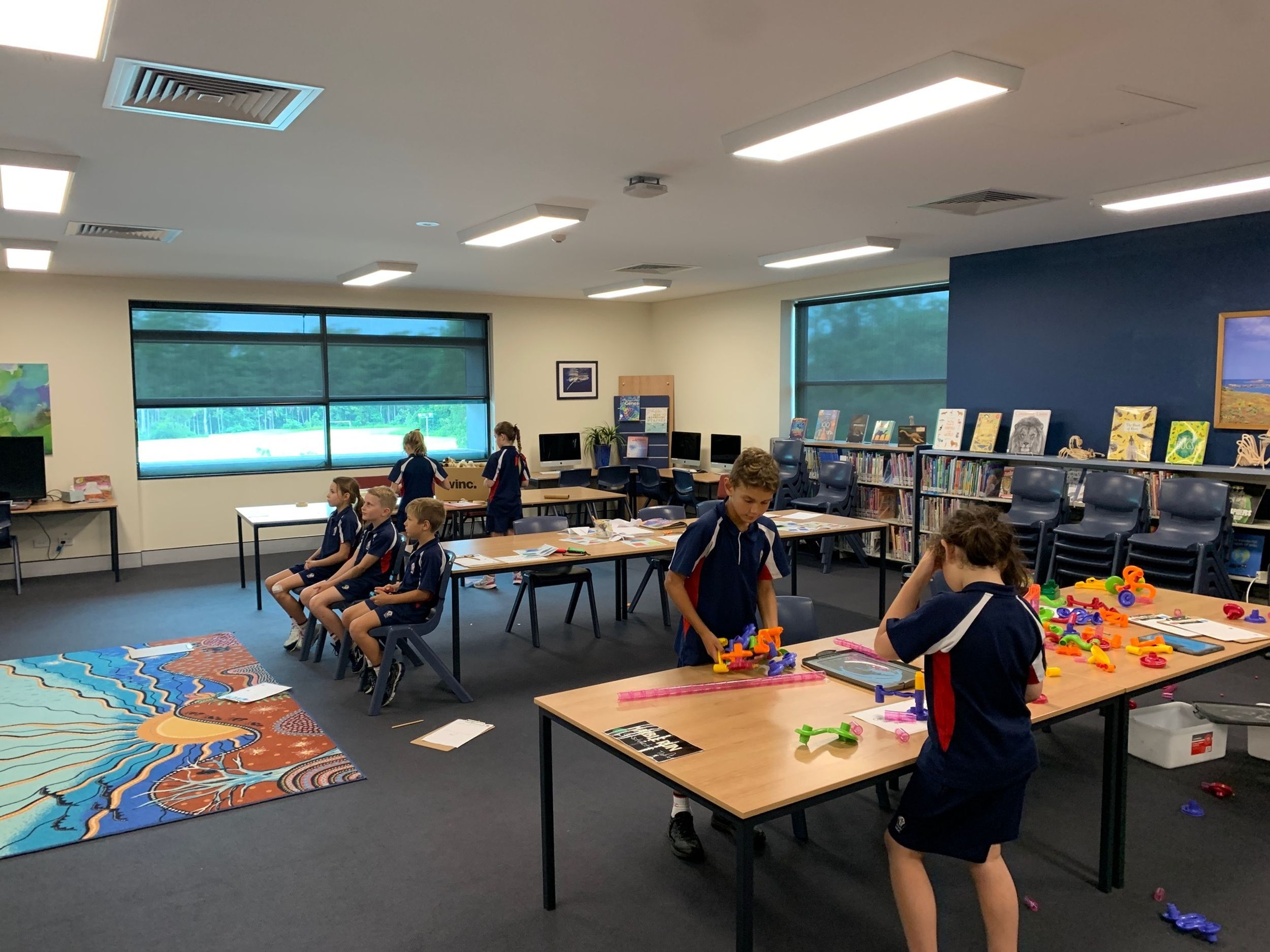 There were multiple activities and technologies set up across the Primary Library space designed to provoke interest and open discussion about what the project could involve and what knowledge of forces would be required.