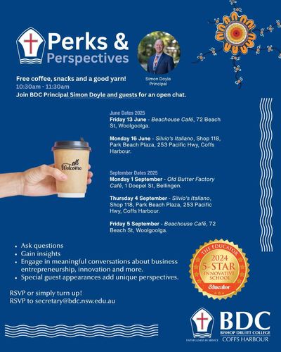 Last week, a number of the leadership team visited Woolgoolga and Coffs Harbour at local cafes. This outreach program is to meet and hear from alumni, past staff, families or carers or people who may be interested in BDC. Thank you for the people who could attend and we look forward to repeating this and visiting Bellingen in Term 3.