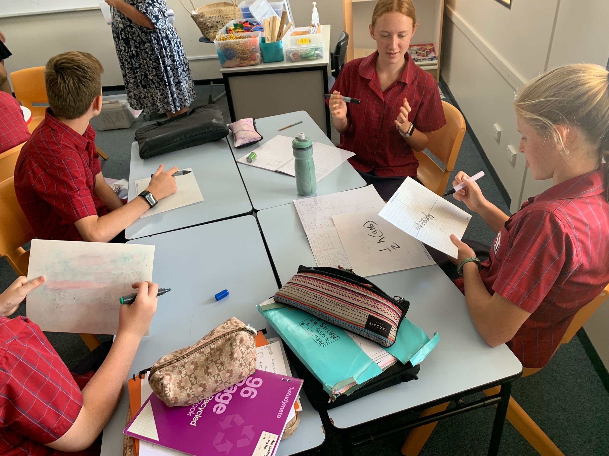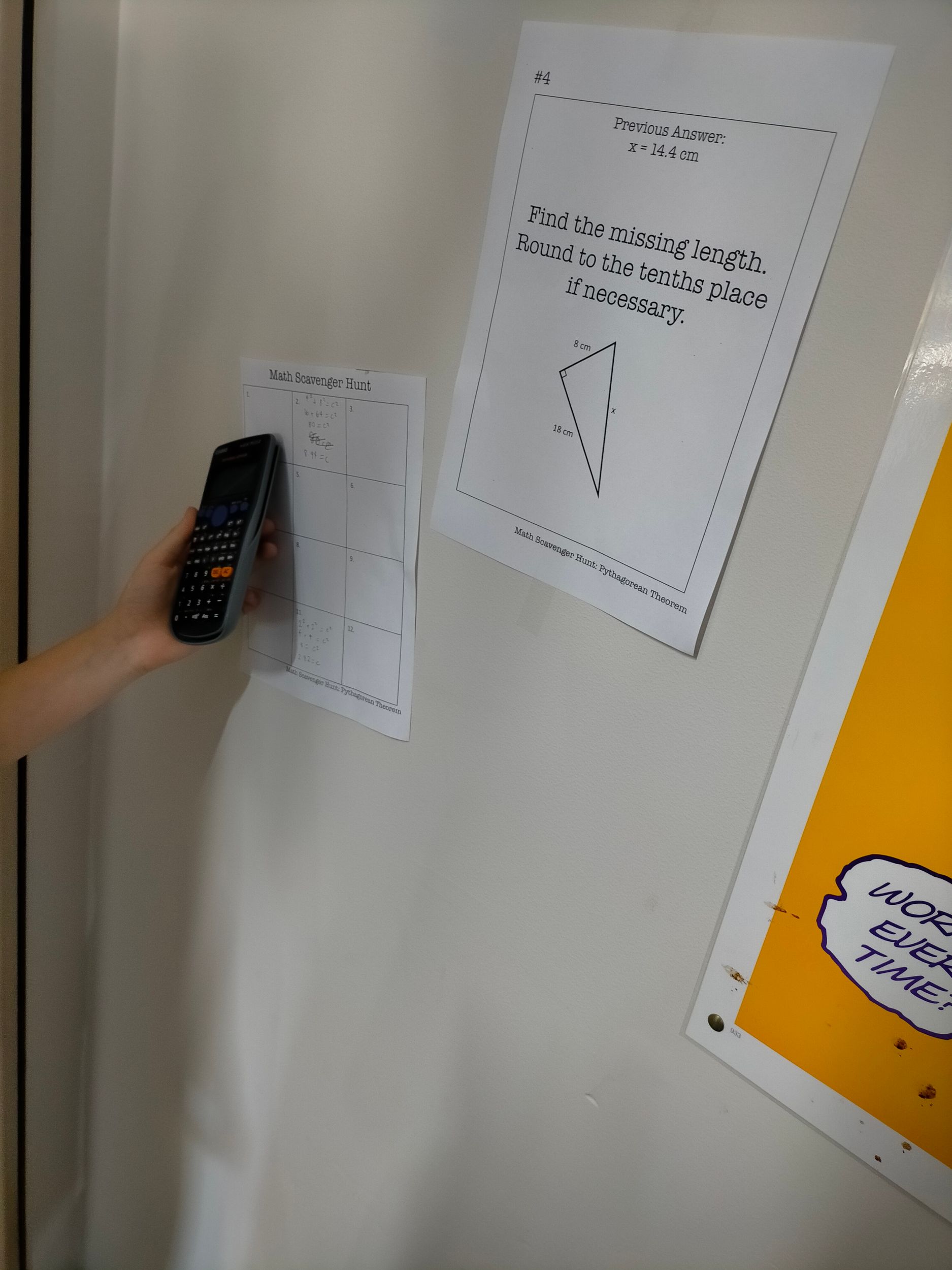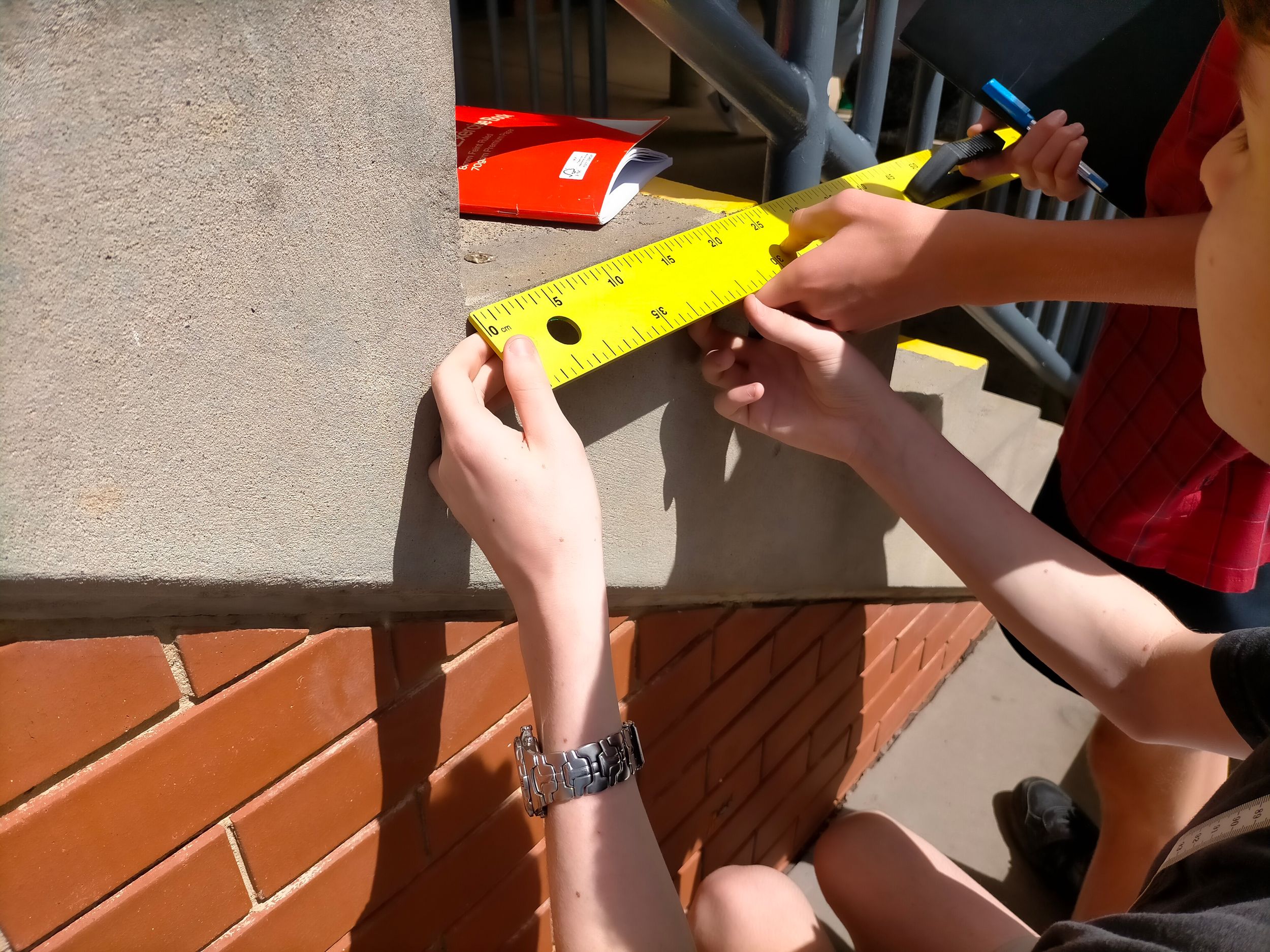 From there the students discovered triangles in the school surroundings and proved whether the triangles they observed were right-angled or not. Applying their knowledge in teams they were then able to solve problems delivered as a scavenger hunt. Two straight hours of Pythagoras' Theorem and they were fully engaged and invested the whole time, great work Year 9!