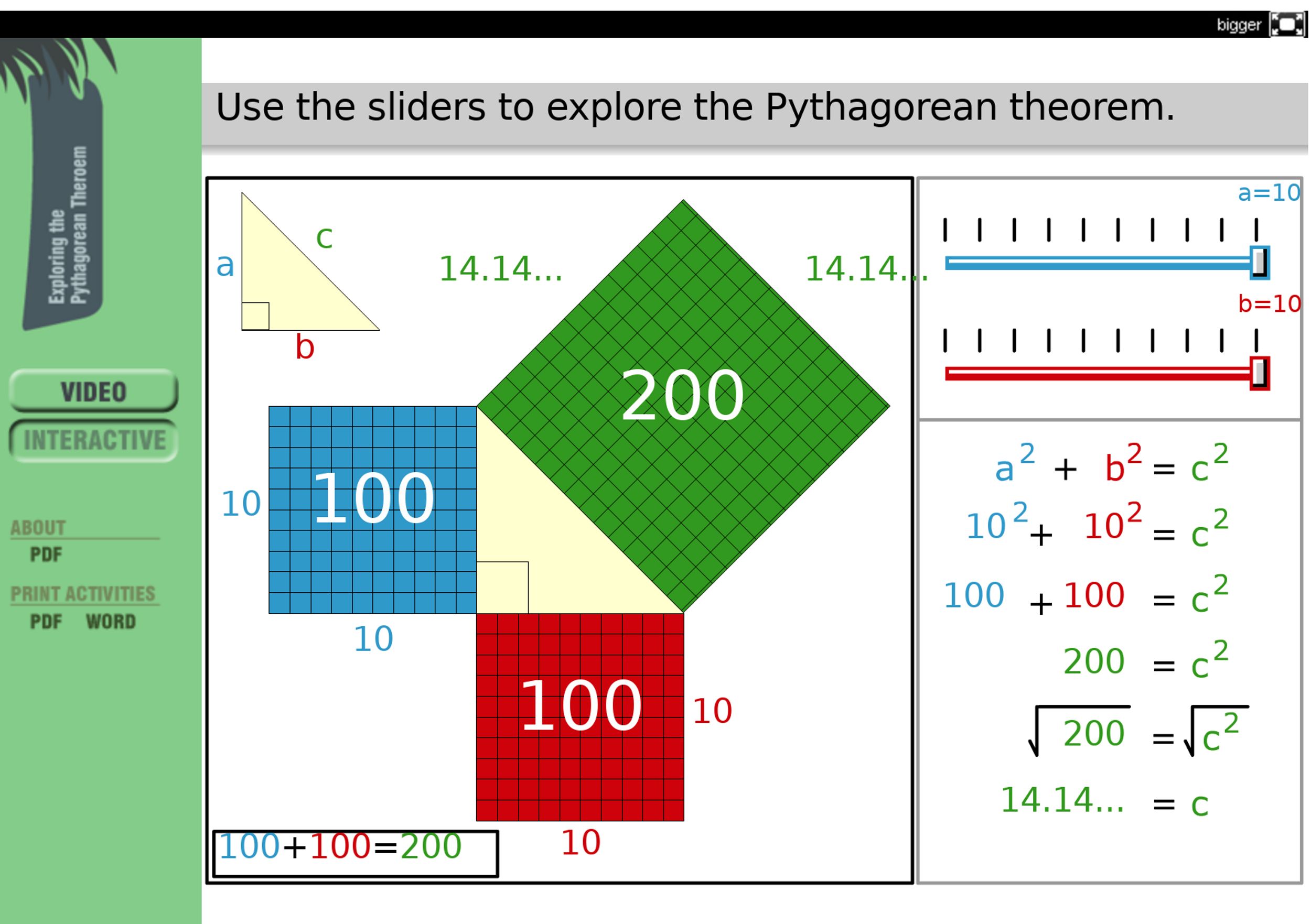 They achieved this by watching 2 videos that demonstrated the theorem visually. These videos were met with "Ohhhhh, I get it!" moments. After creating visual summaries of the videos the students then discovered how to calculate side lengths by manipulating an online interactive.