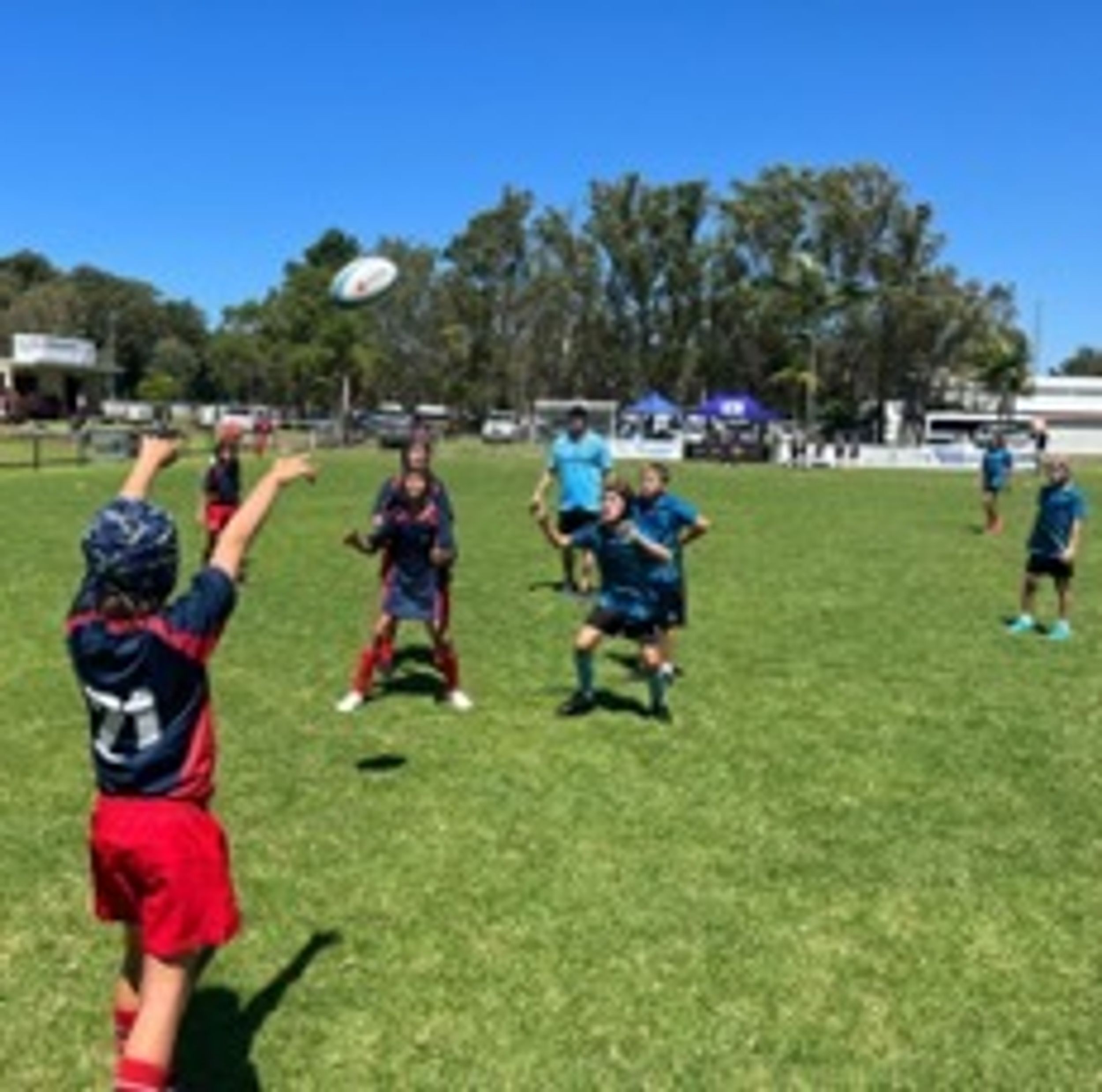 Under blue skies and a bright, hot, Autumn sun, the BDC Primary Rugby Sevens teams arrived at Rex Hardaker Oval ready for action. Both teams, BDC Red and BDC Blue completed their warm-ups with purpose and precision. The early matches saw some strong attacks and determined defense, with the Red Team winning their first two matches.