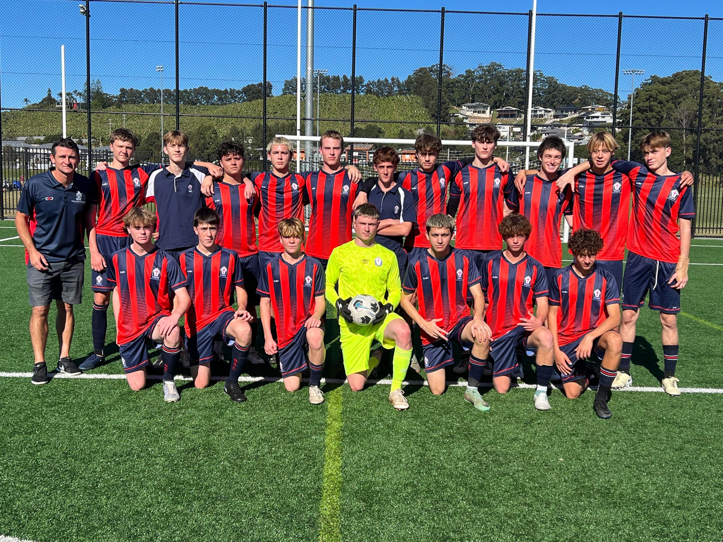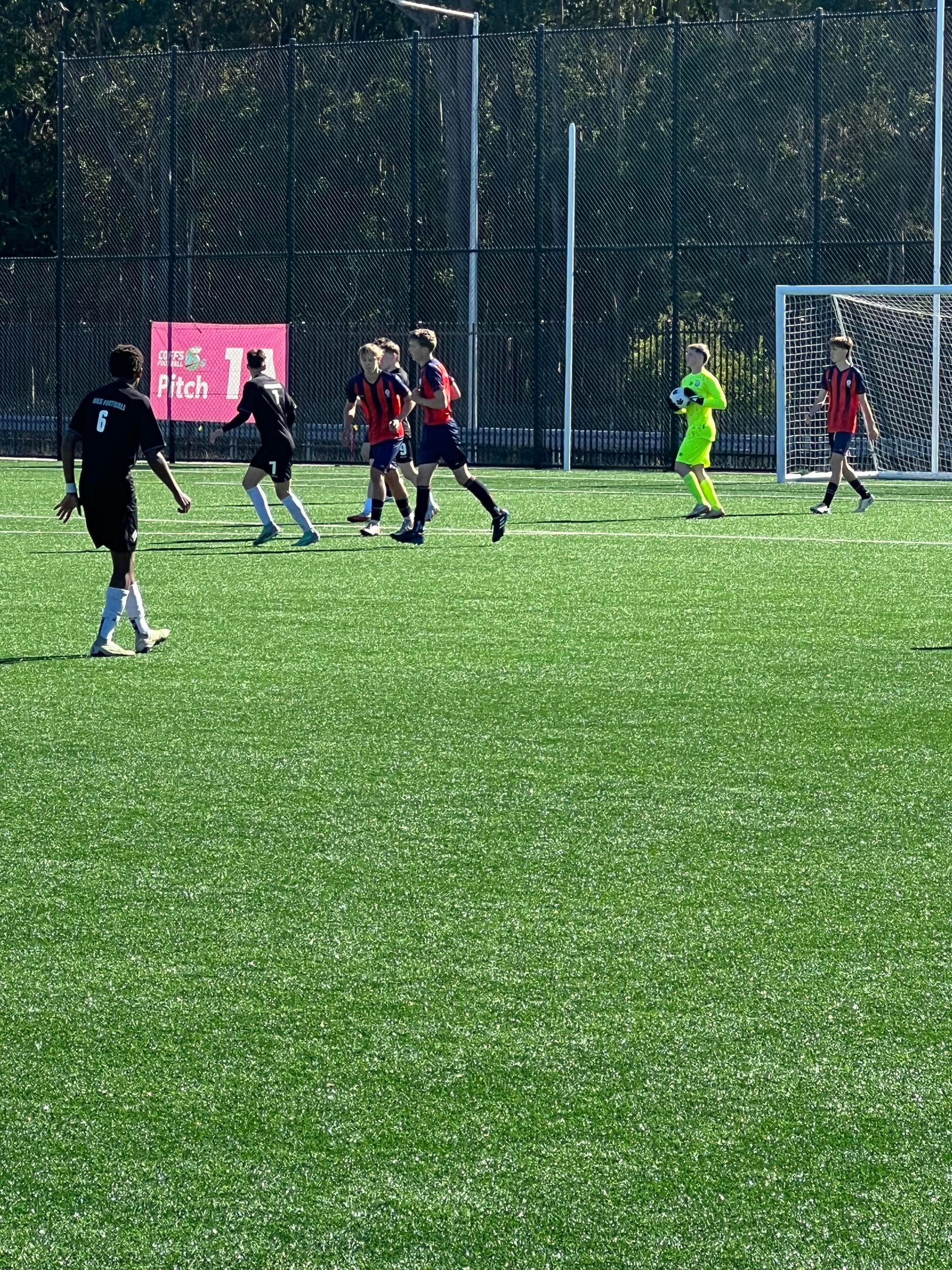 After defeating Trinity Grammar in the quarter-final game, the open boys team took on Mamre Anglican School who travelled to Coffs Synthetics for the semi-final. Unfortunately on the weekend prior Anderson Haldon injured himself to be unavailable for this important game. The game started and both teams had good patches. Mamre took the lead with a good finish 20 minutes into the first half. Shortly after this goal, Kai Veneziano made an incredible run down the left side, beating multiple players, getting into the penalty box and drawing a foul. Logan Sambrook took a well-placed penalty to make the score 1-1 at halftime.