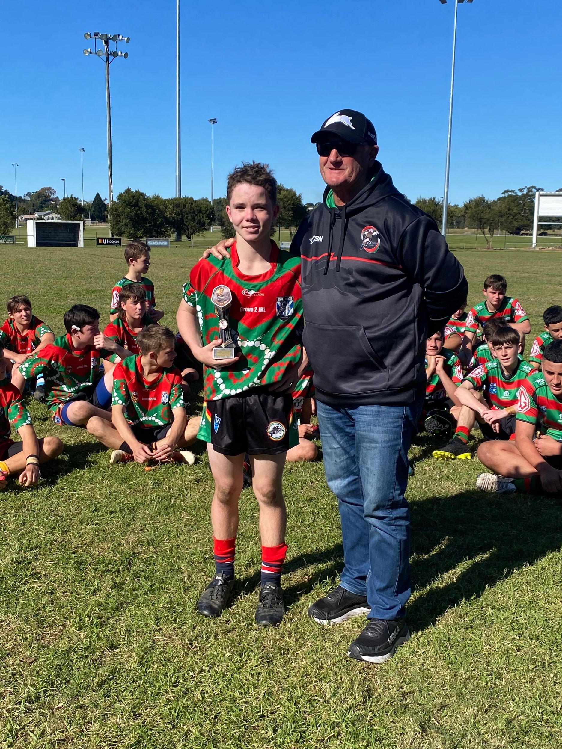 Here’s a photo of Quinn with one of the South Sydney Junior Coaches.
