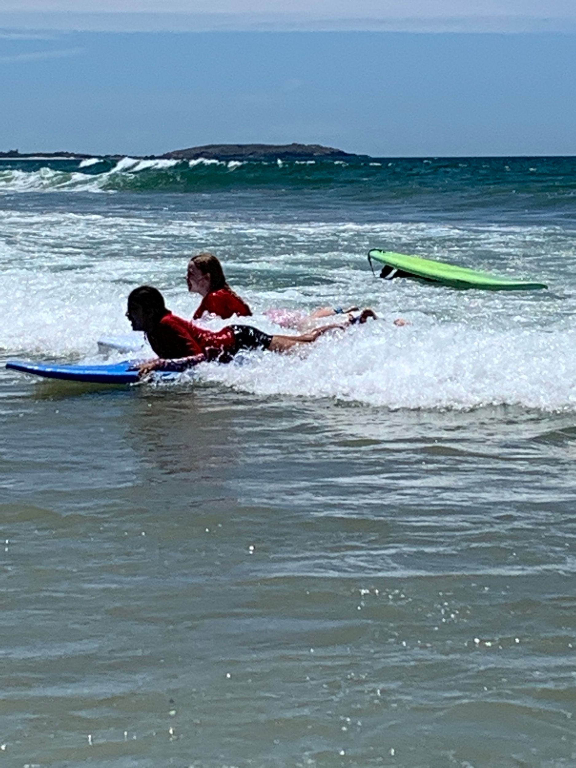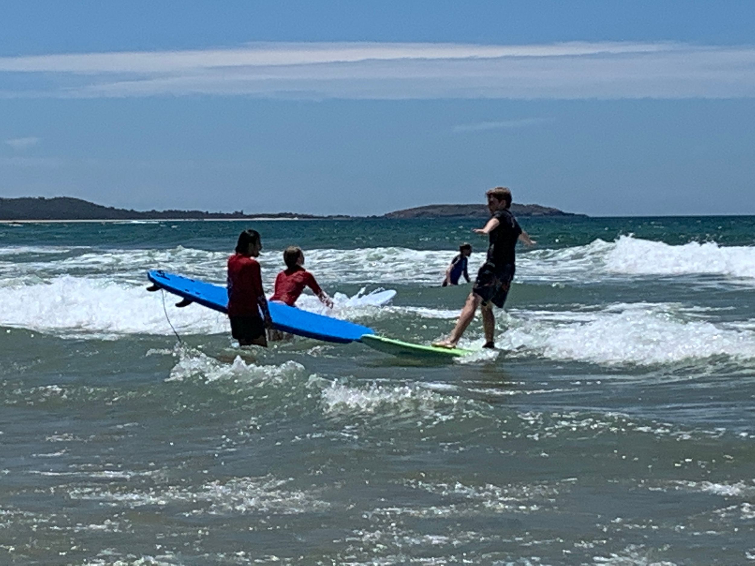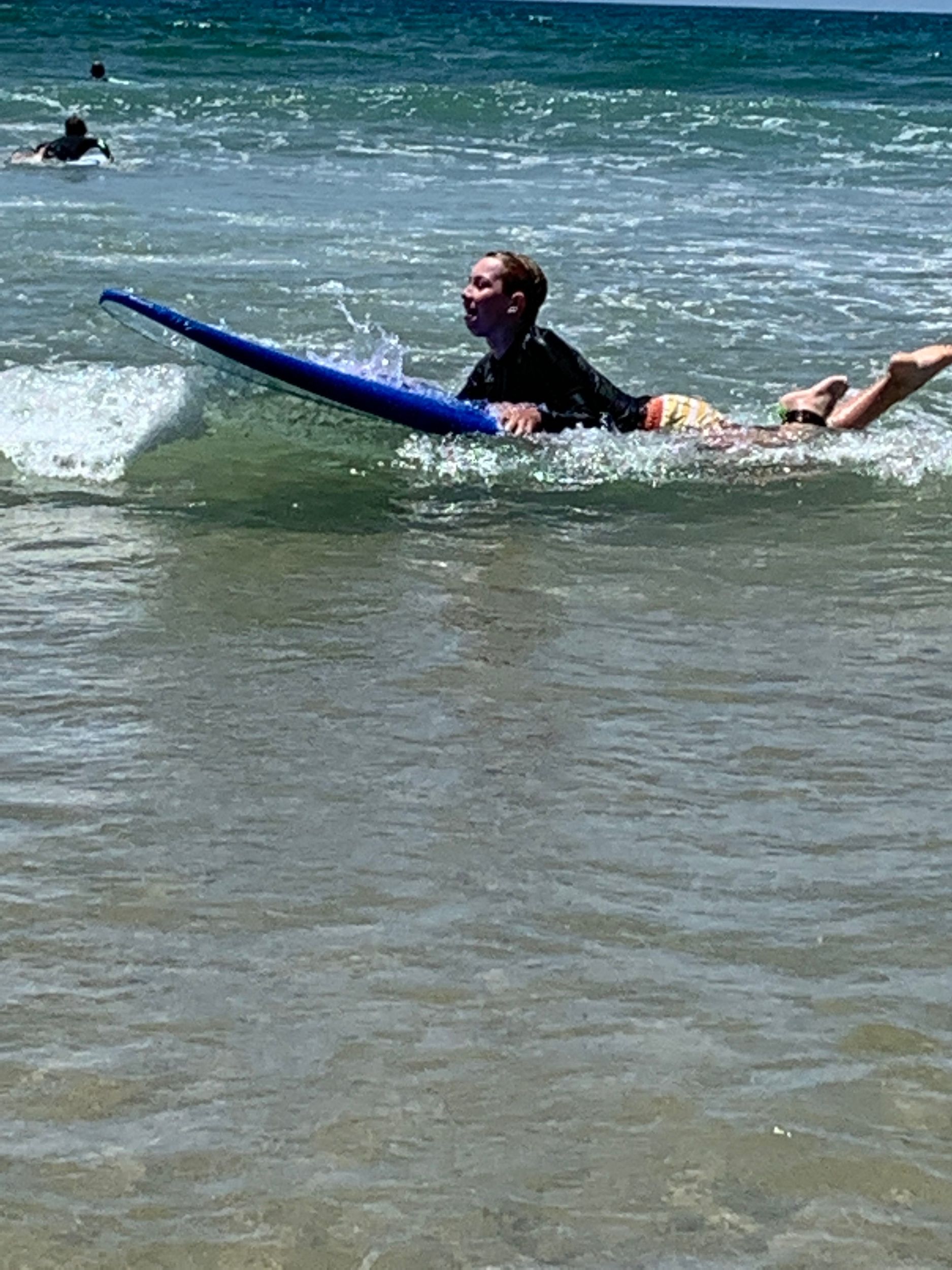 Last week students in Year 6 went for a surf day at Sawtell Beach. When we got there, we were told what was going to happen and the expectations. Soon after that we met the surf instructors and got ready to go in the water just for fun. Once we had enough fun it was time for recess. Most of us were just building sandcastles. After that, we were running around the beach and swam. Then we got split up into class groups. 6M got to surf first while 6C were learning about CPR and DRSABCD. 6M were getting ready to go in the water and learn the basics. Next 6M got the best waves and chose one partner to do the fun activities; like pretending one of us was drowning and the other getting a board and saving us. I'm pretty sure that the Year 10s who came enjoyed it. We then had to swap and 6M were learning CPR and DRSABCD and 6C were surfing. Next, we played beach games. Eventually we got to go in the water again. Then we had the choice to surf or go and get ready for lunch. We all got to surf and then packed up to get ready for the bus to come pick us up and to have lunch. We also got to go to the Kiosk for lunch if we wanted to. Finally, the bus came, and we ended up at school. “It was a fun time.”